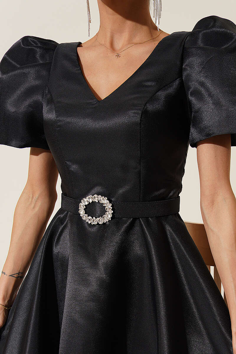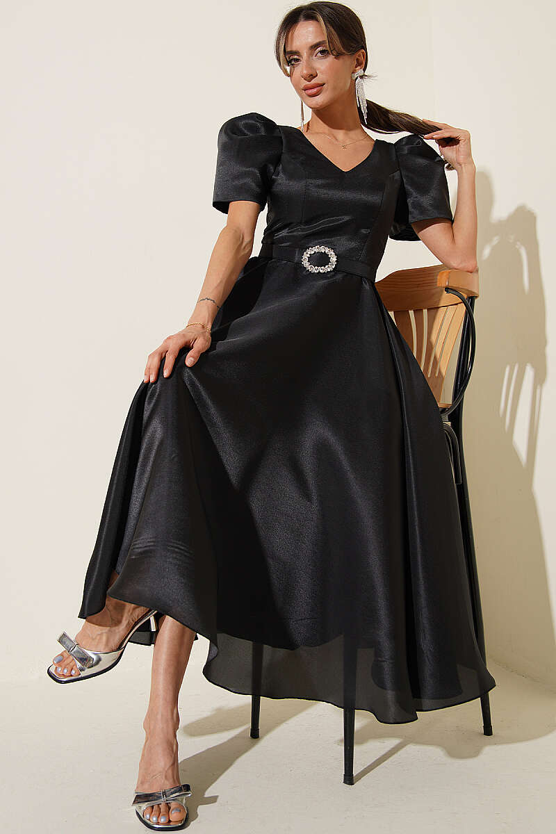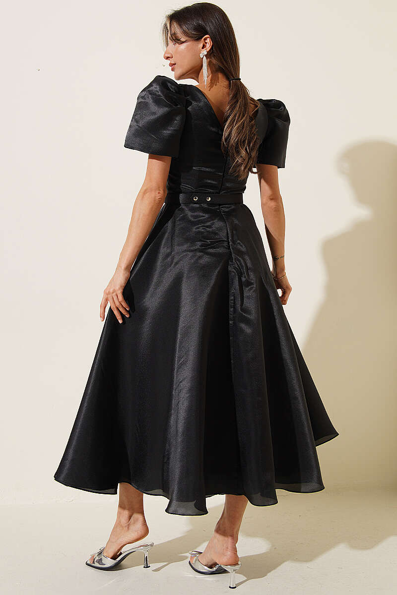 Taş Kemerlli Prenses Abiye Elbise Siyah