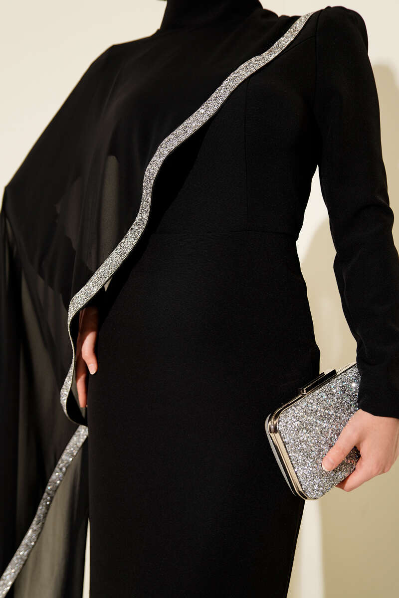 Kuşaklı Simli Pullu Abiye Elbise Siyah