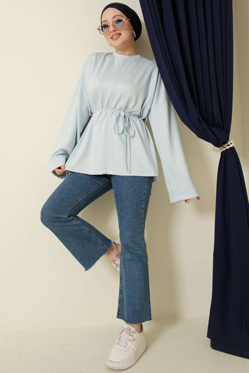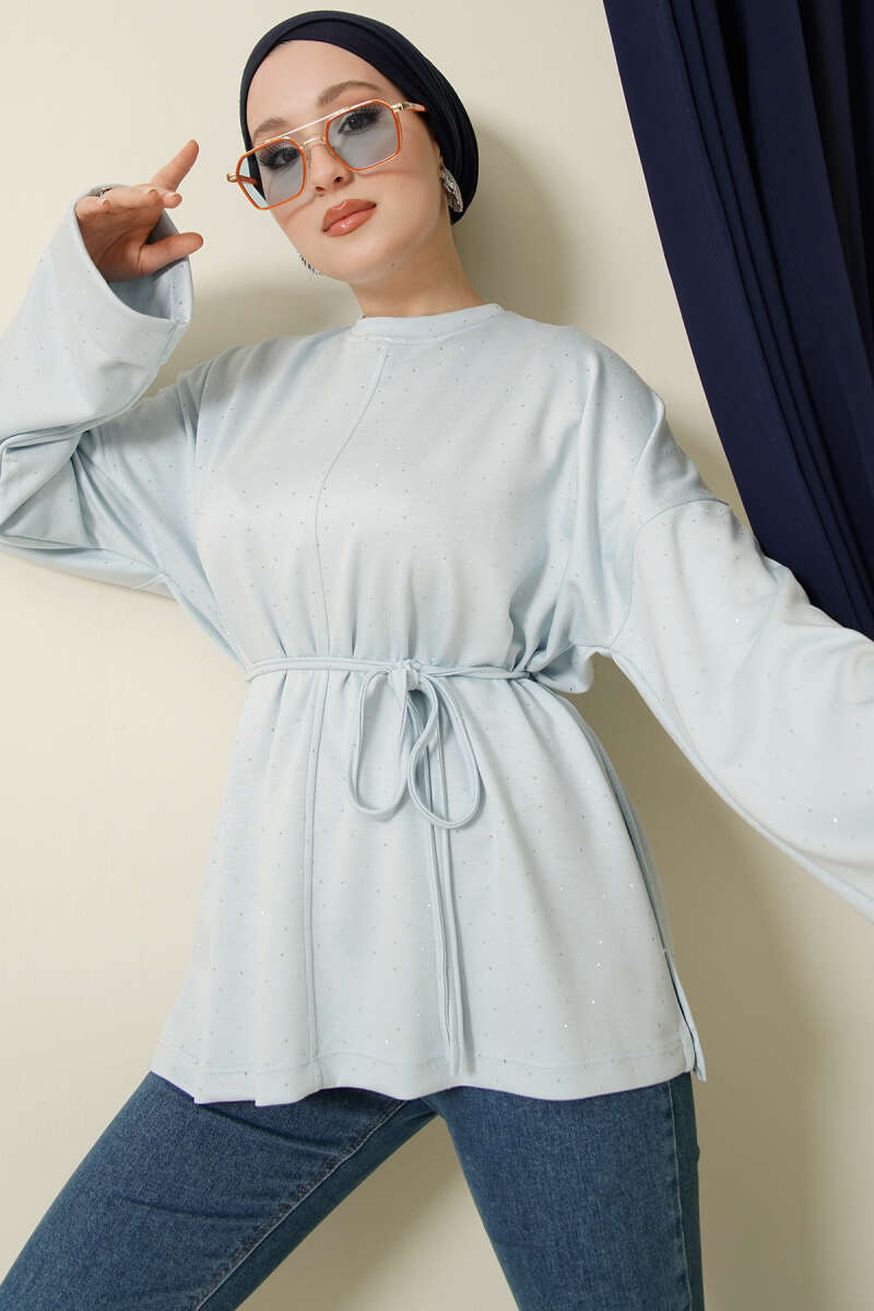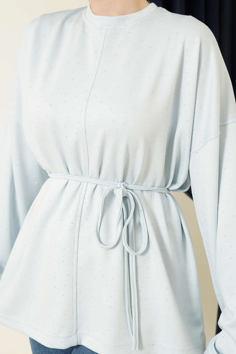 Taş Süslemeli İp Kuşaklı Tunik Bebe Mavi