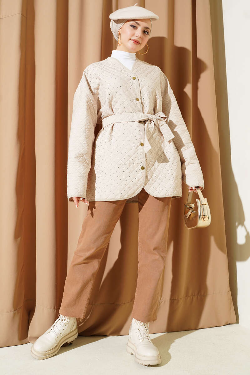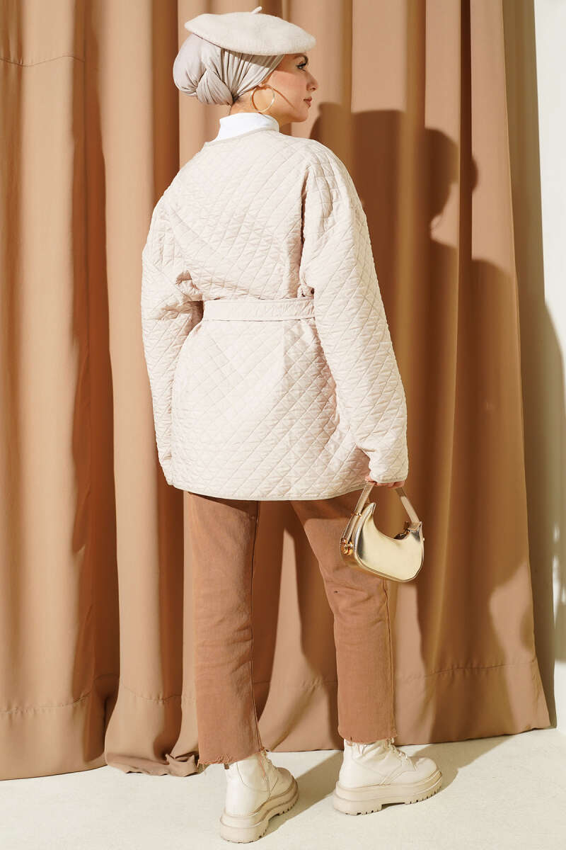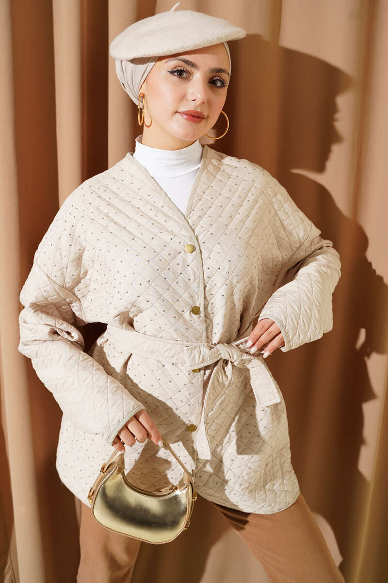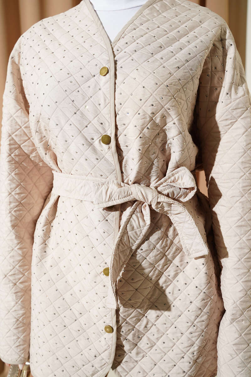 Bel Tünelli Çıtçıtlı Peluş Ceket Bej