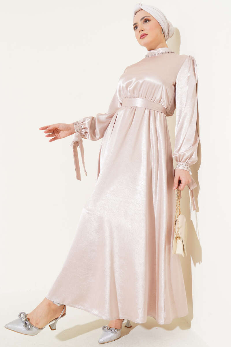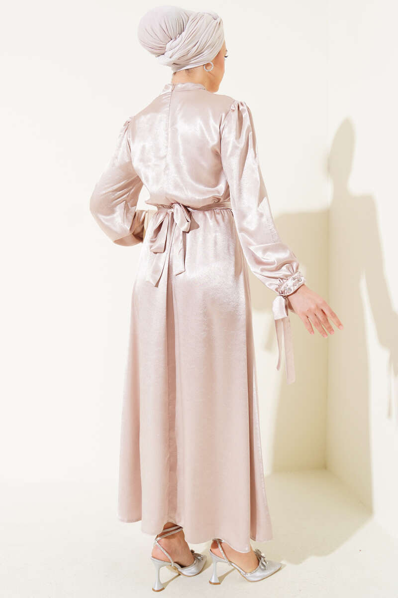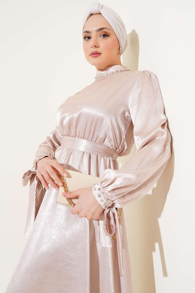Kol Piliseli Kuşaklı Elbise Zümrüt