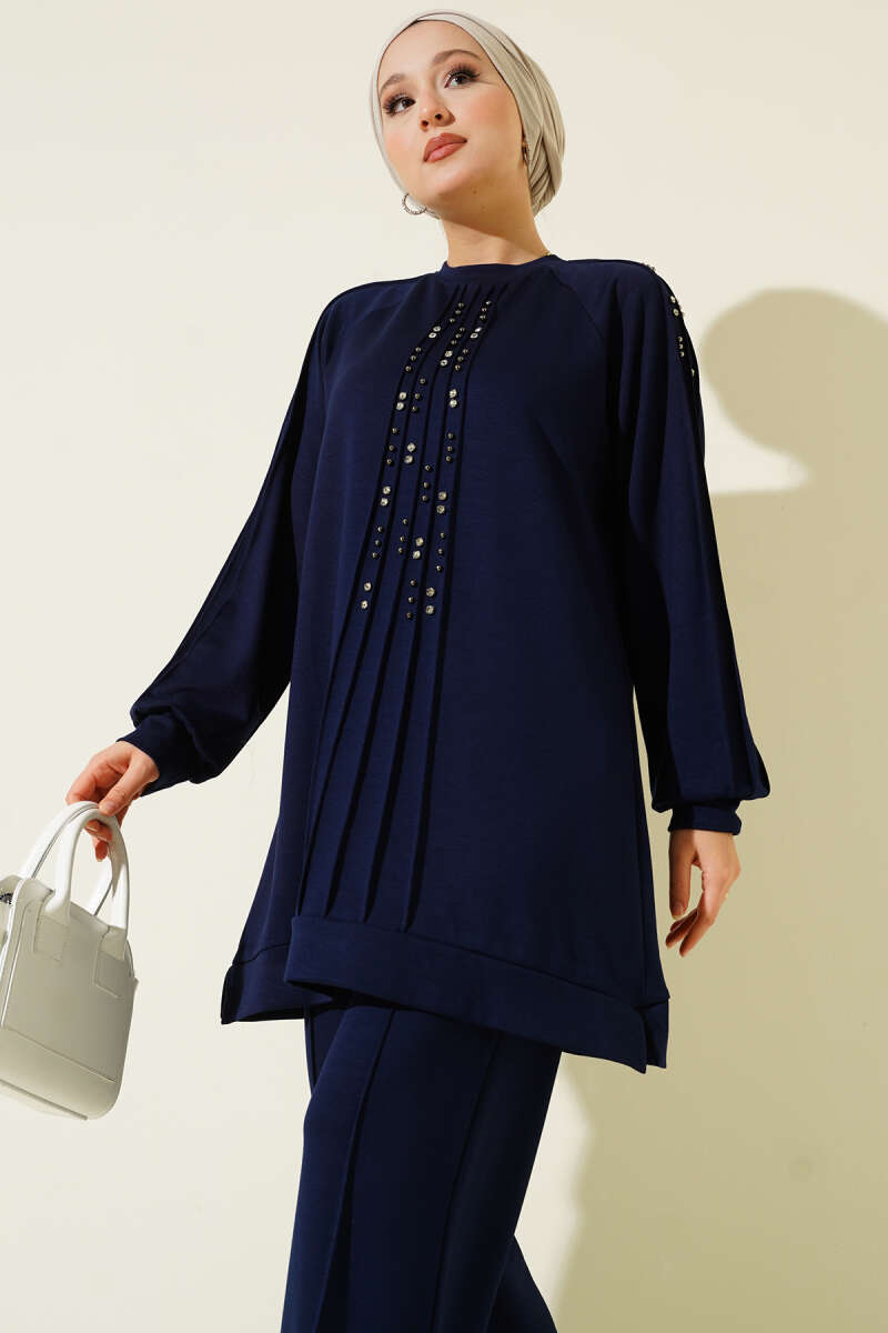 Loyşa Cepli Uzun Tunik İkili Takım Yağ Yeşili