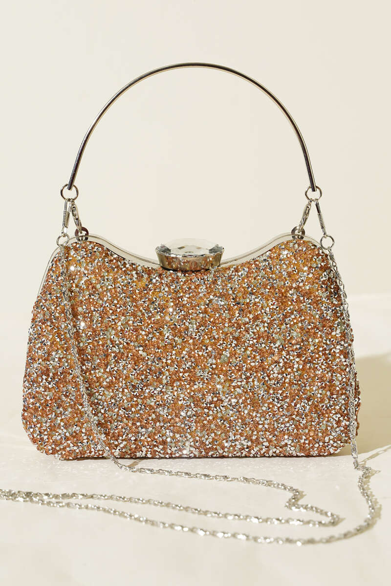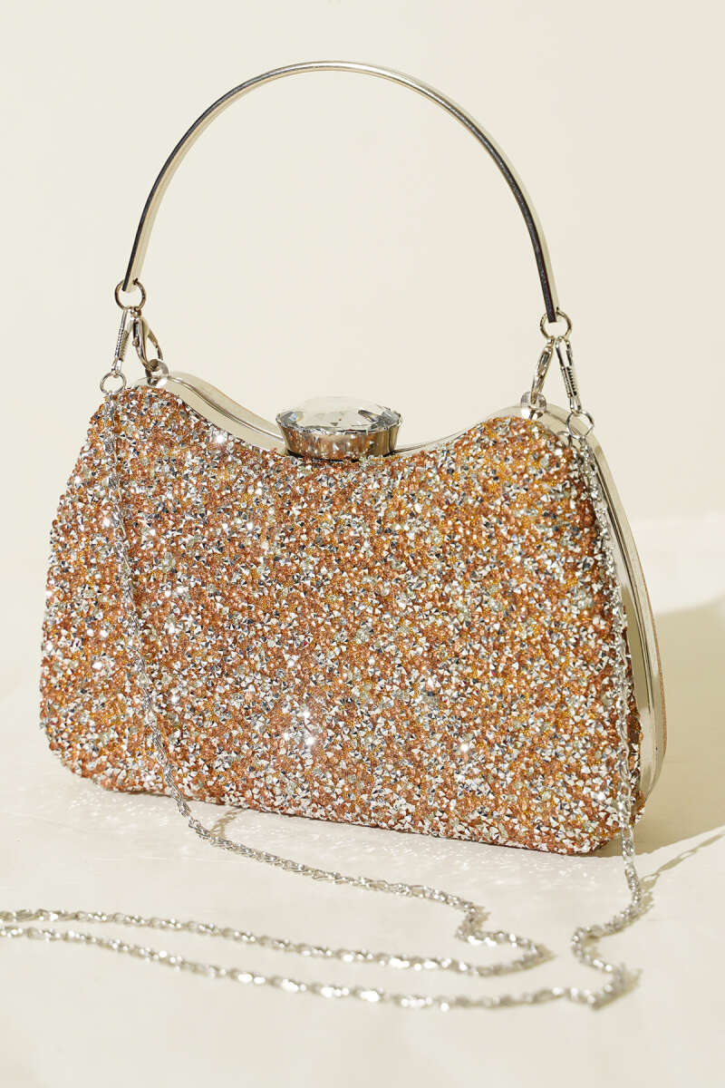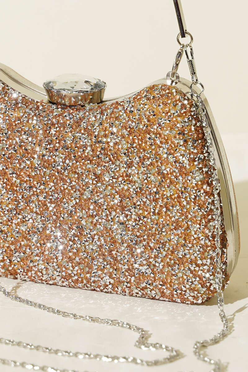 Simli Yarım Ay Model Kadın Abiye Çanta Bakır