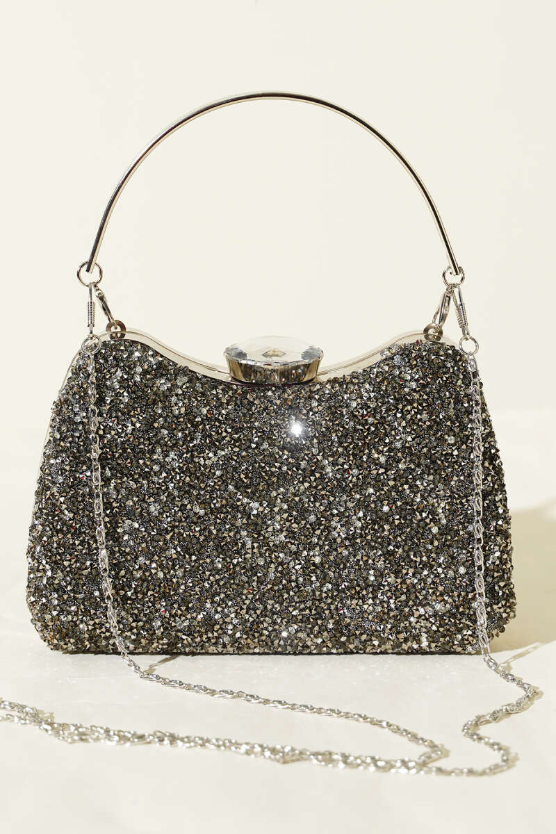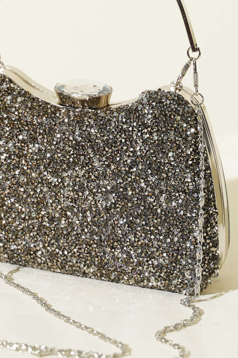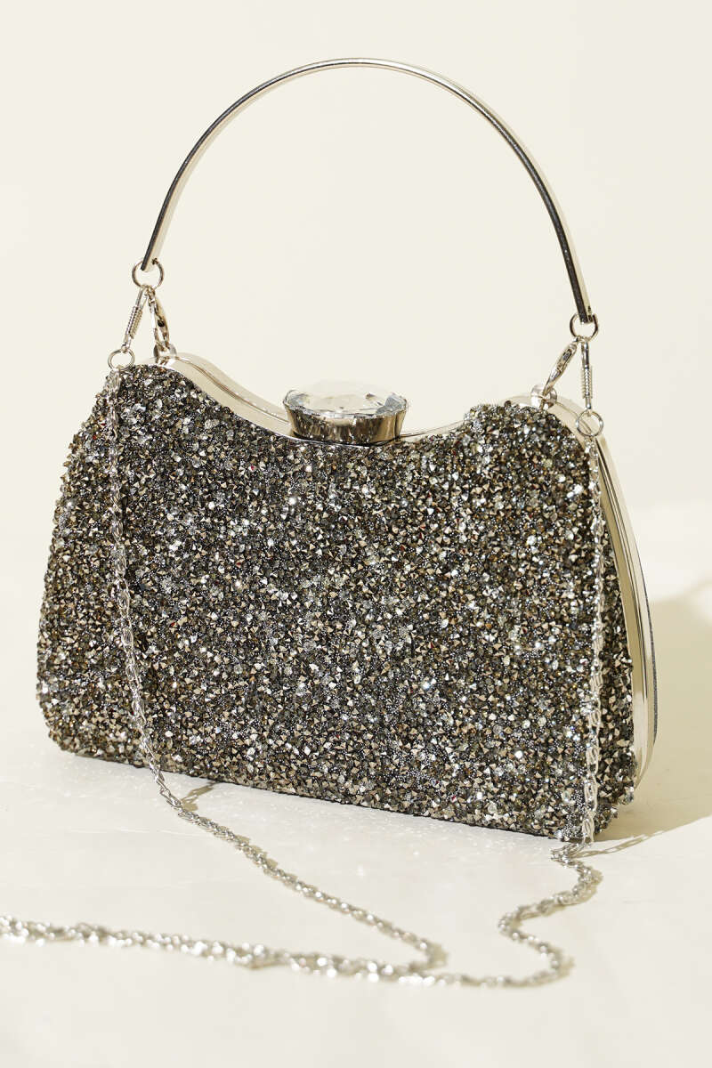 Simli Yarım Ay Model Kadın Abiye Çanta Gümüş