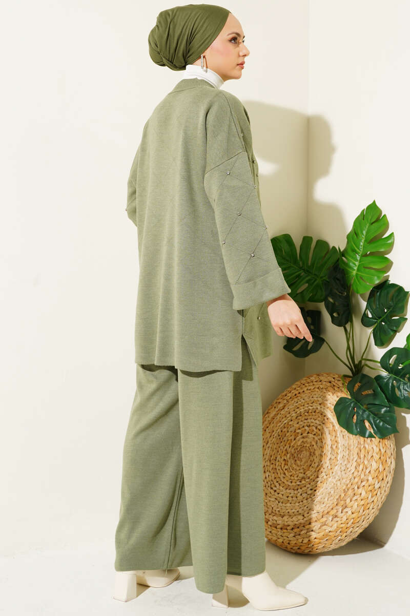 Dikiş Detaylı Basic Triko İkili Takım Haki