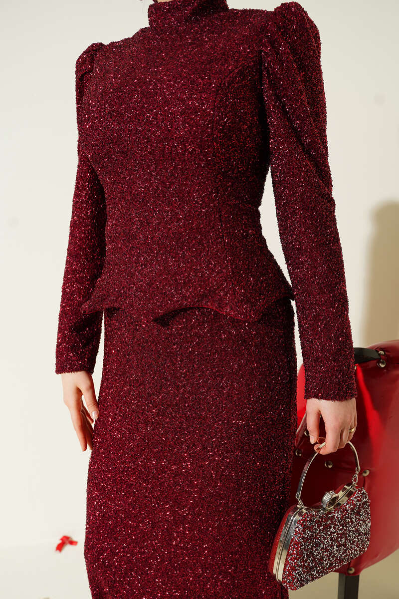 Taşlı Balık Model Abiye İkili Takım Bordo
