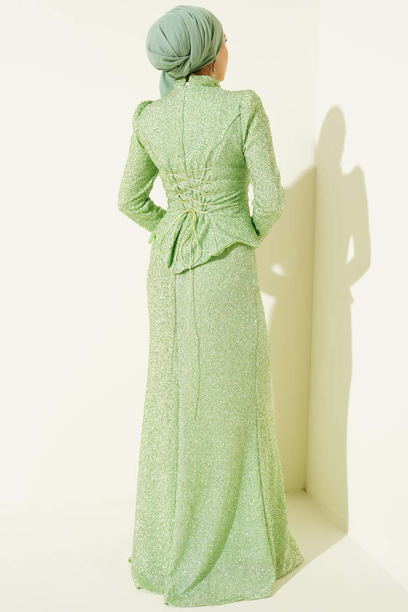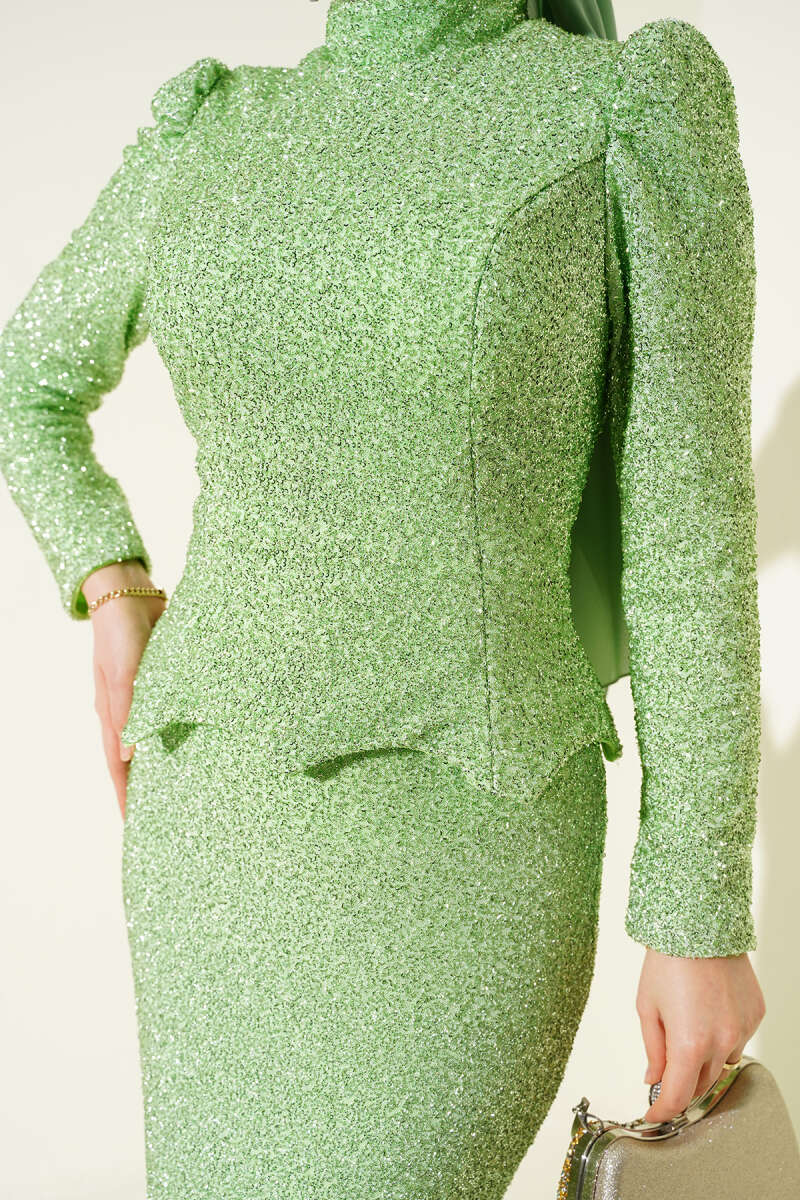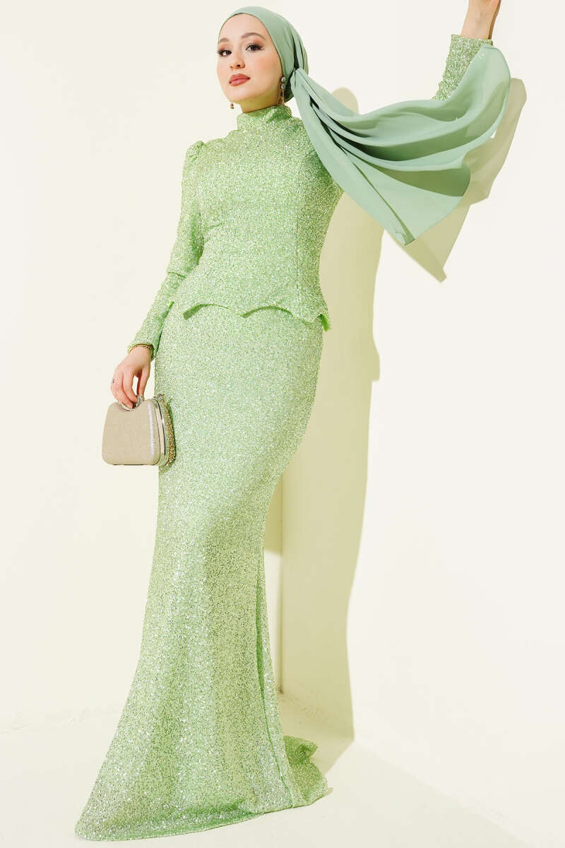 Taşlı Balık Model Abiye İkili Takım Fıstık Yeşili