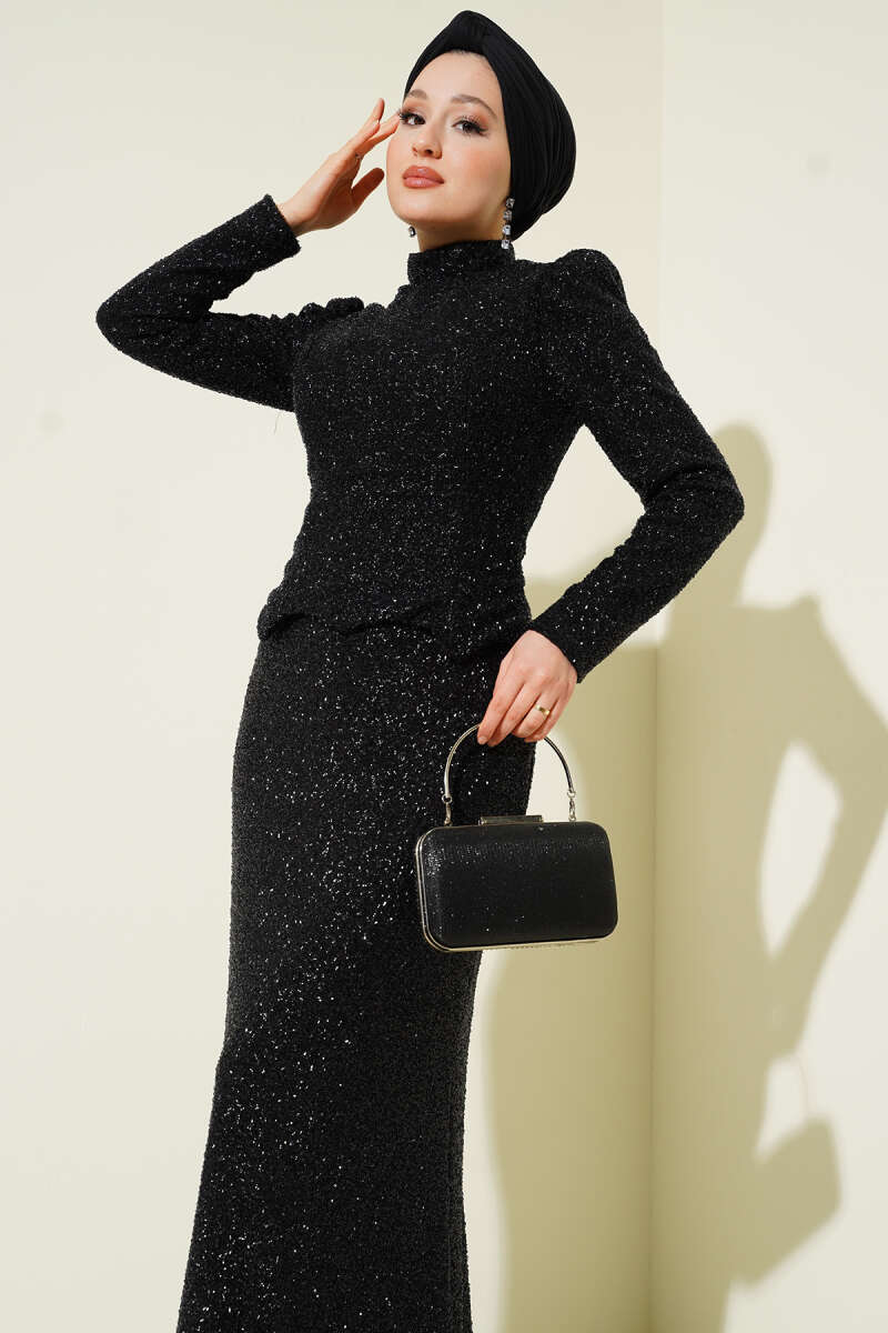 Taşlı Balık Model Abiye İkili Takım Siyah