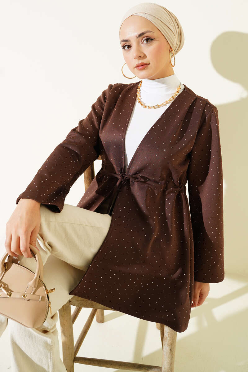 Taşlı Bel Tünelli Scuba Kimono Lacivert