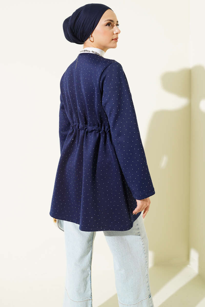 Gold Düğmeli Kuşaklı Süet Ceket Lacivert