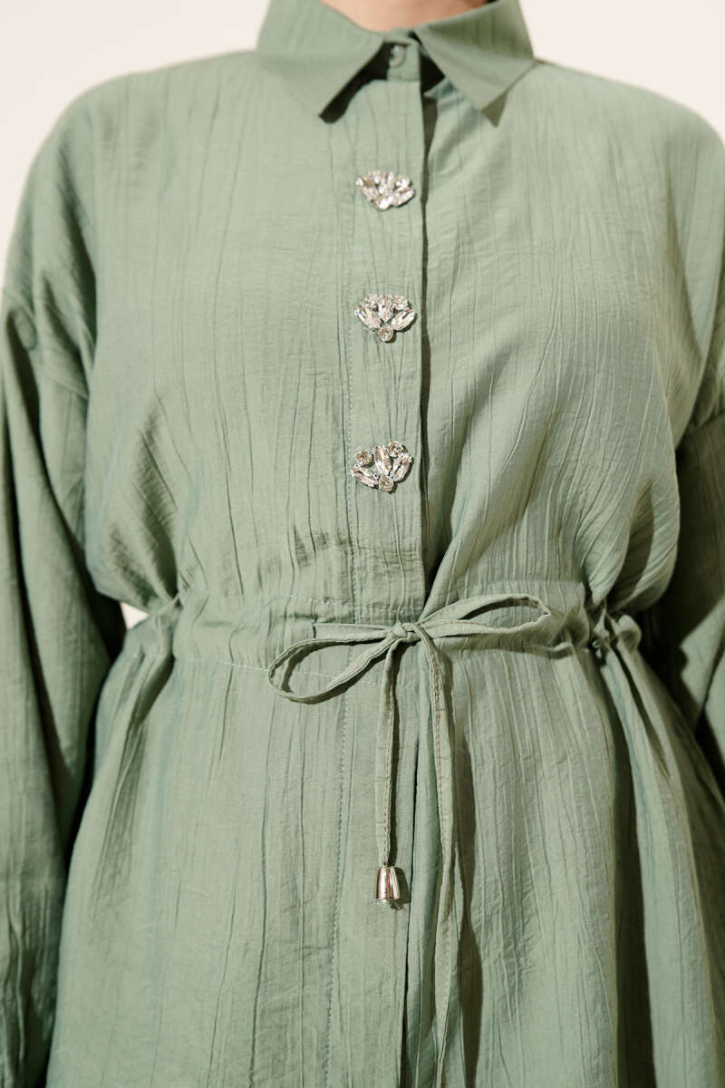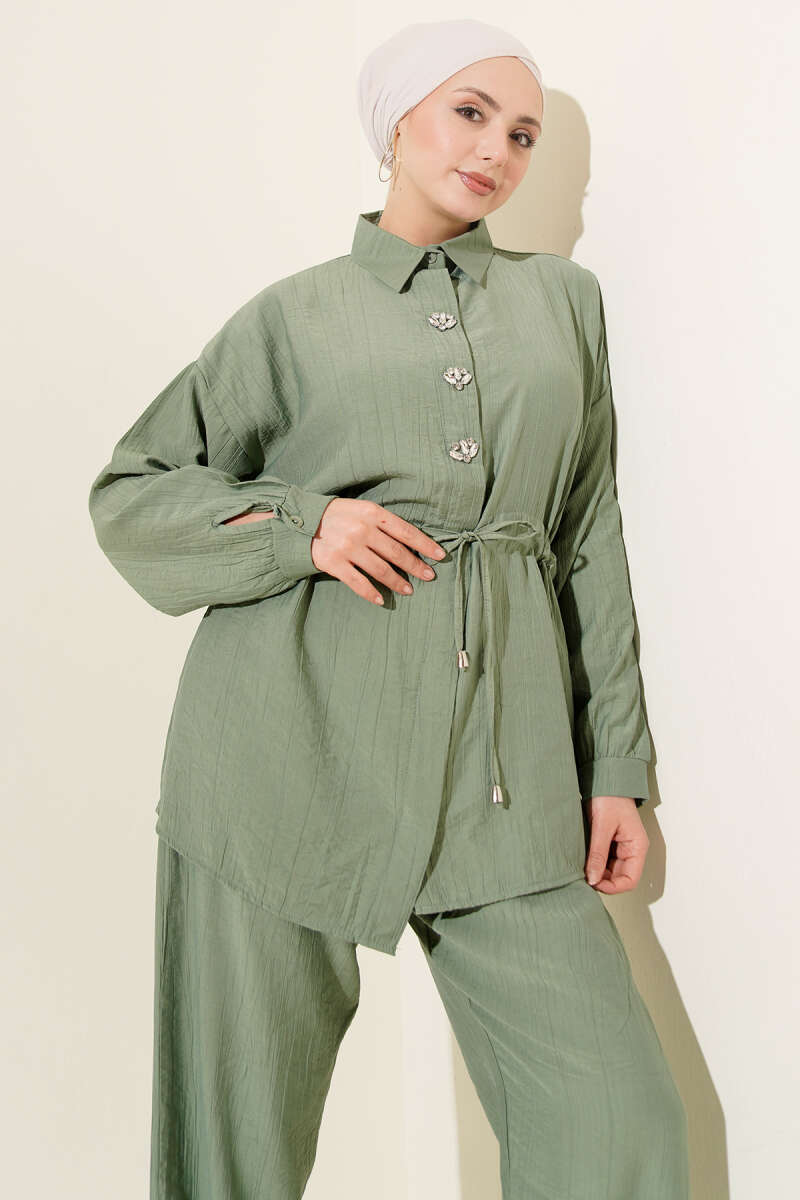 Taşlı Bel Tünelli Tunik İkili Takım Çağla Yeşili