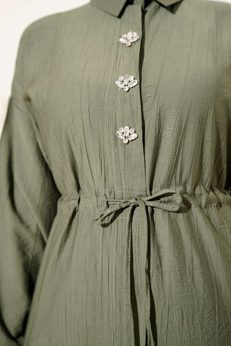 Düğmeli Yan Bağlamalı Kısa Gömlek Petrol