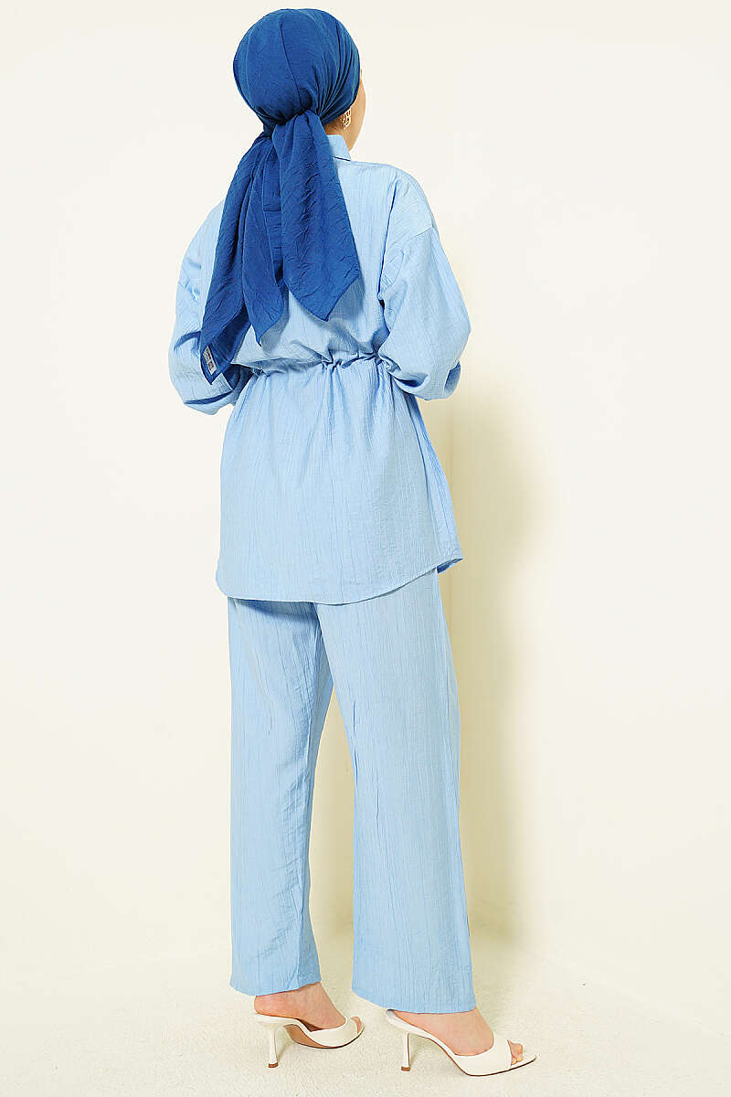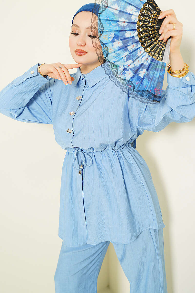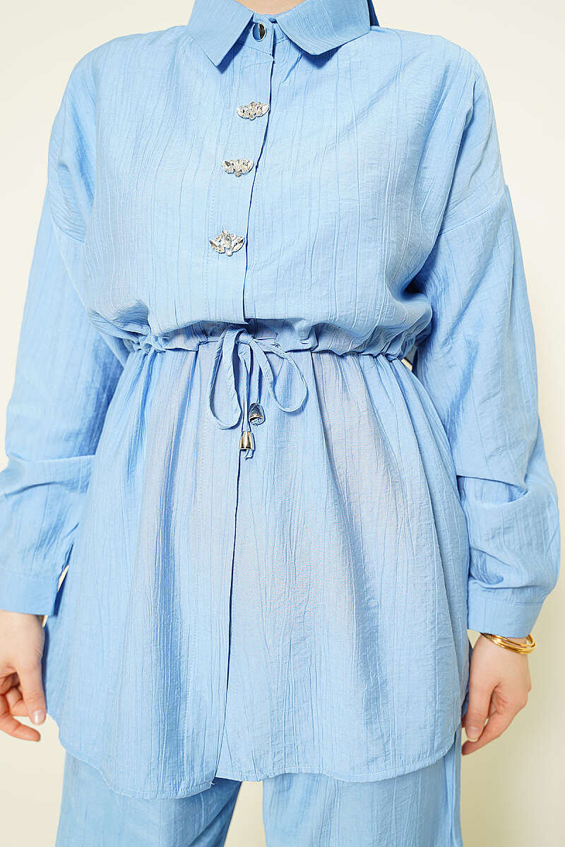 Taşlı Bel Tünelli Tunik İkili Takım Mavi
