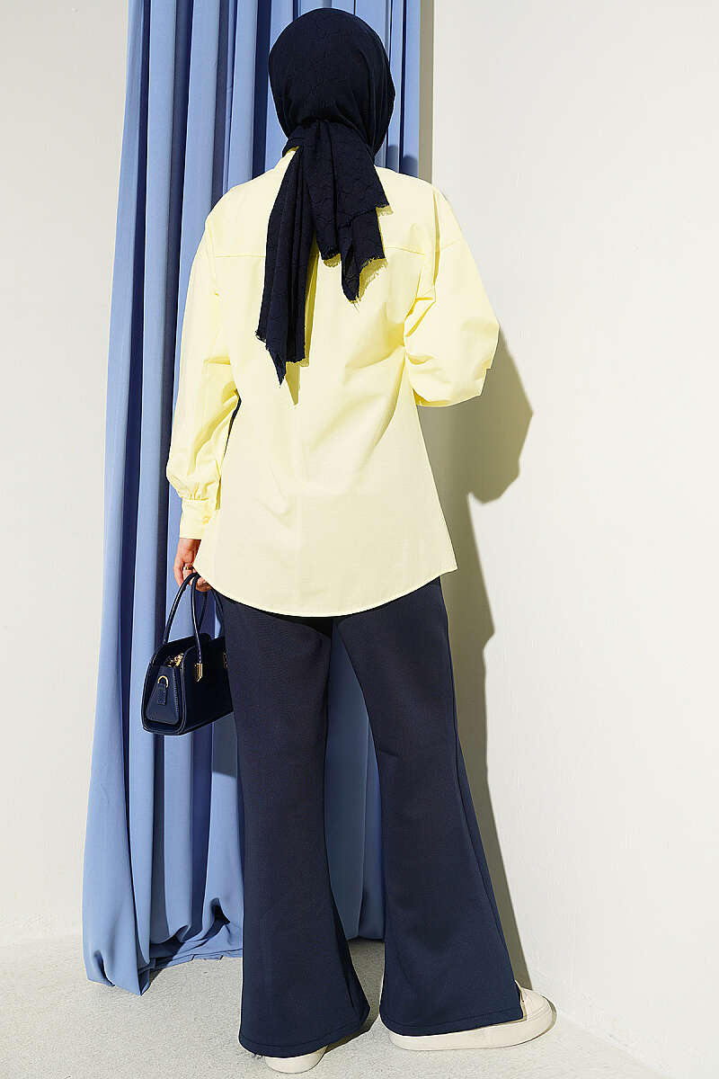 Taşlı Broşlu Gizli Düğmeli Gömlek Sarı