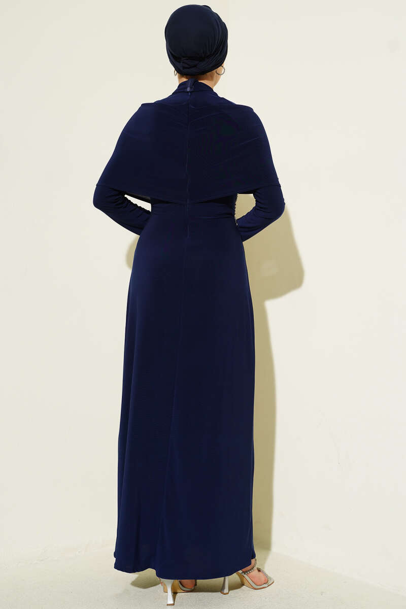 Balon Kol Sim Sakallı Abiye Elbise Lacivert
