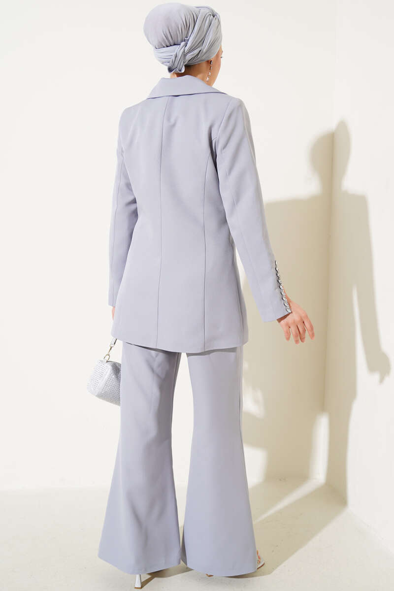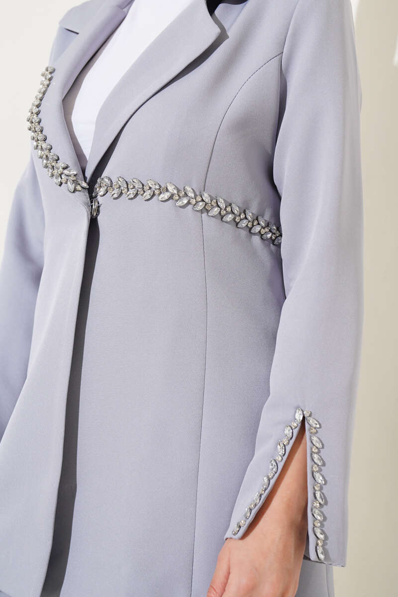 Taşlı Ceketli İkili Takım Gri