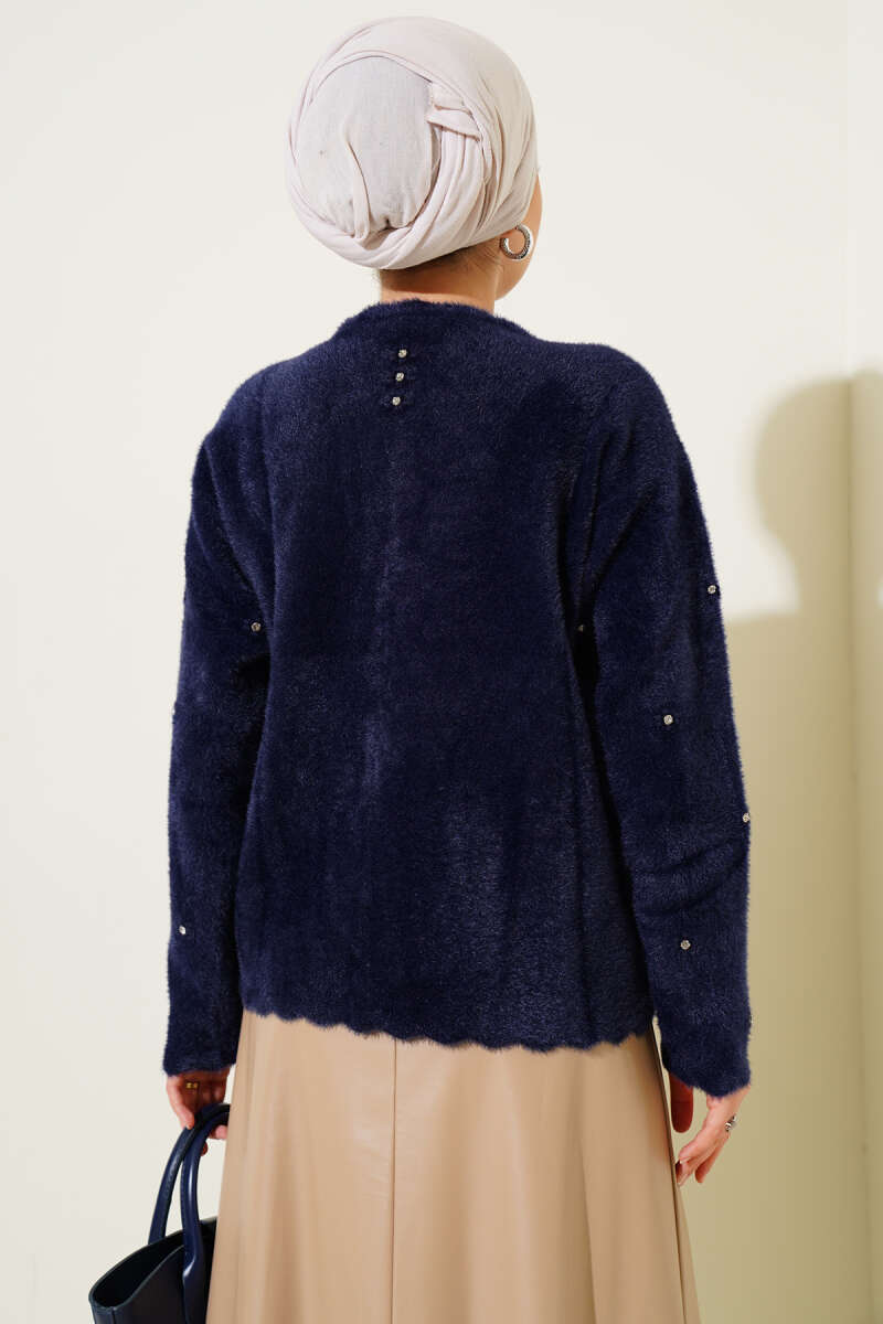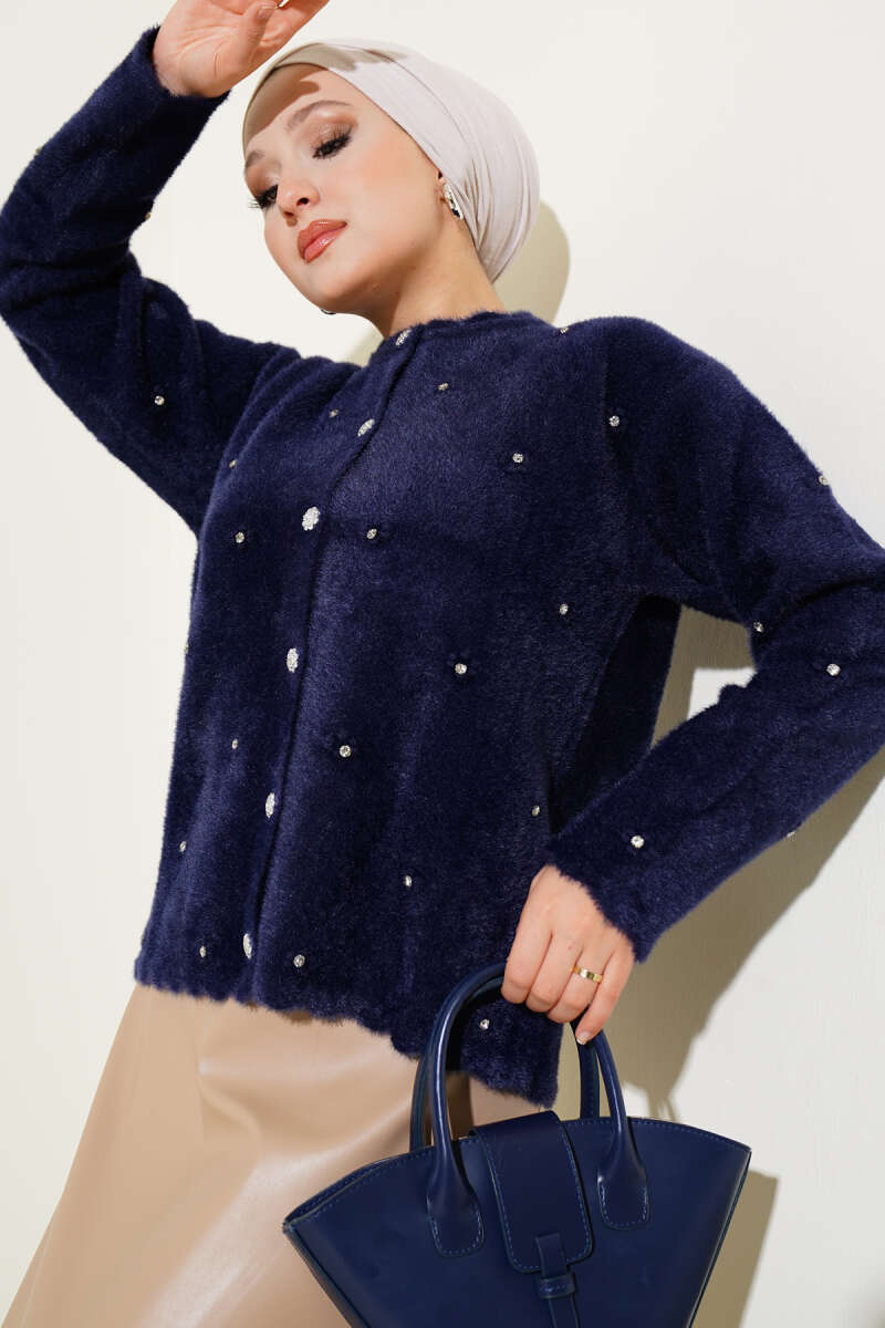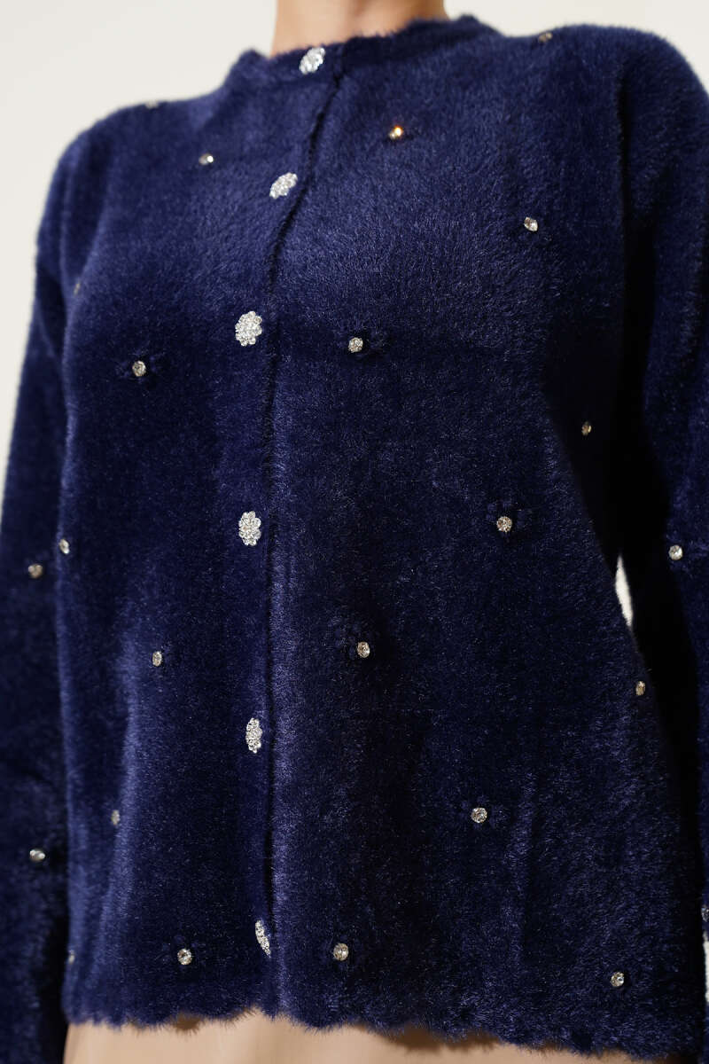 Pullu Dantelli Kısa Triko Hırka Siyah