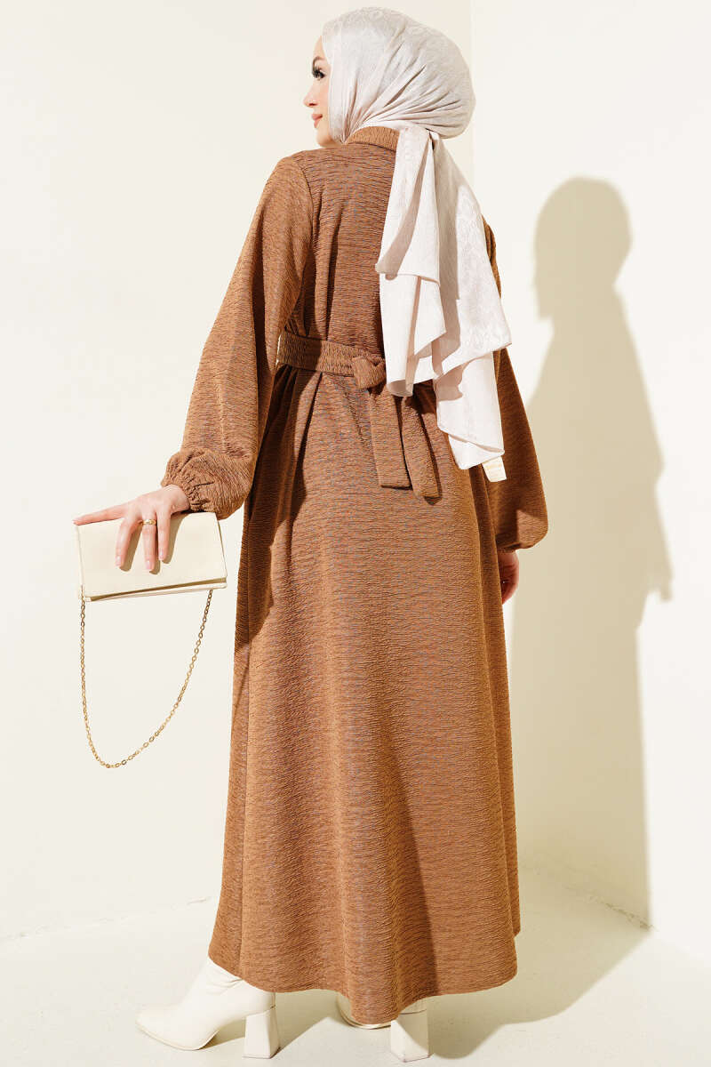 Pelerin Detaylı Pileli Triko Elbise Kahve