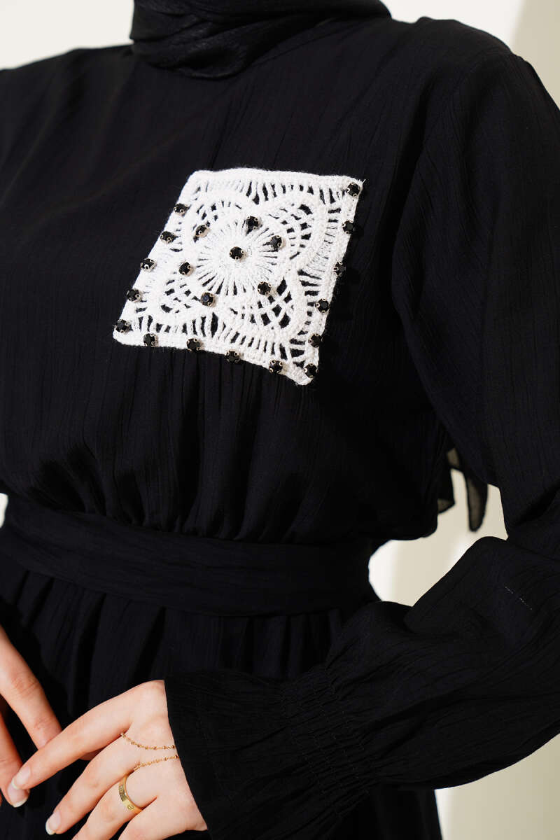 Baklava Desen Ajurlu Triko Elbise Siyah