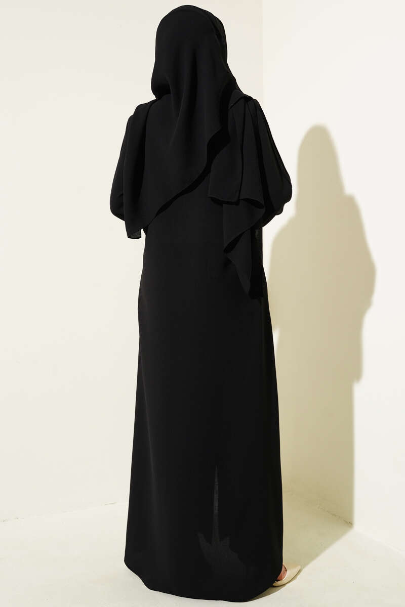 Taşlı Dikişli Omuz Vatkalı Büyük Beden Ferace Siyah