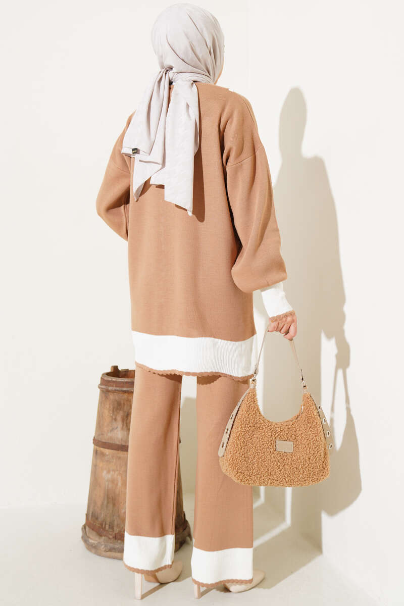 Balıkçı Yaka Fitilli Triko İkili Takım Kahve