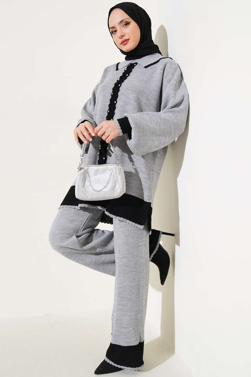 Yaka Kürklü Fermuarlı Triko İkili Takım Siyah
