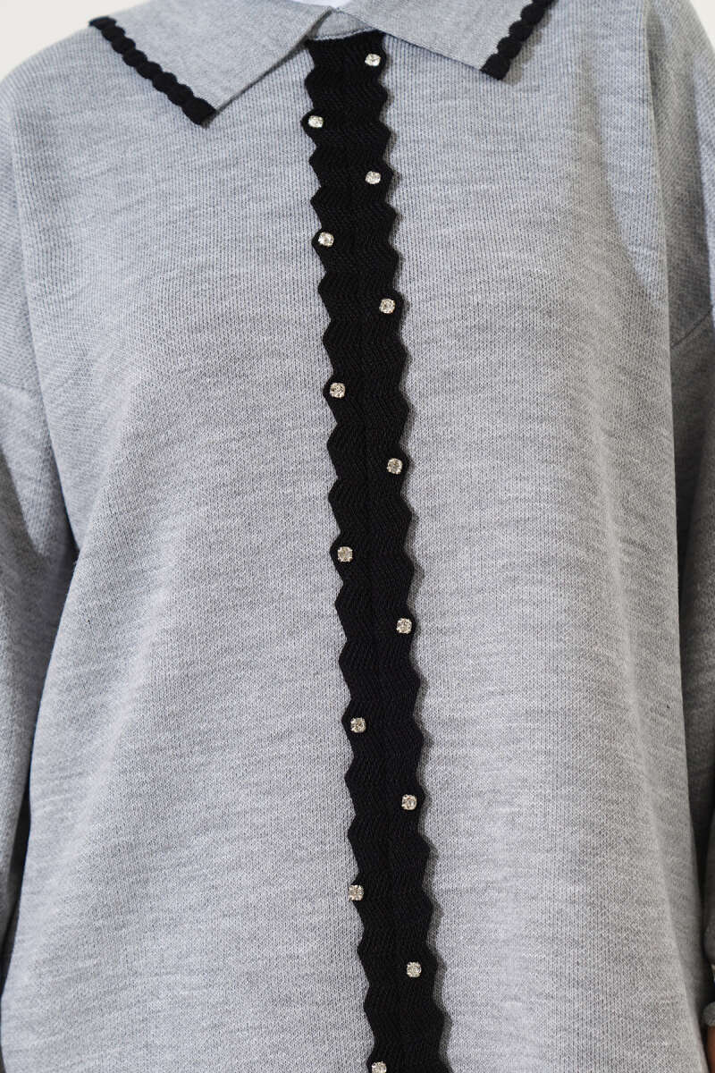 Üç İplik Yarım Çıtçıtlı Sweatshirt Gri