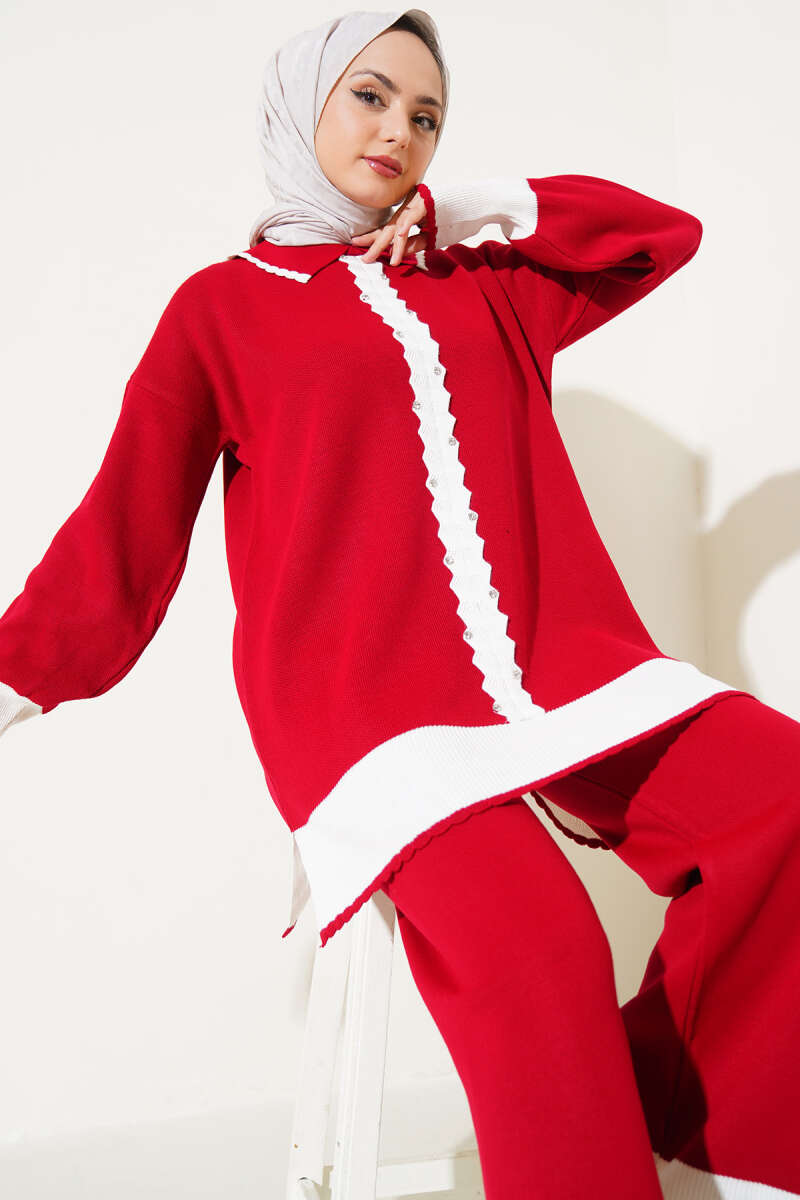 Çoban Dikişli Triko Tunik İkili Takım Nefti