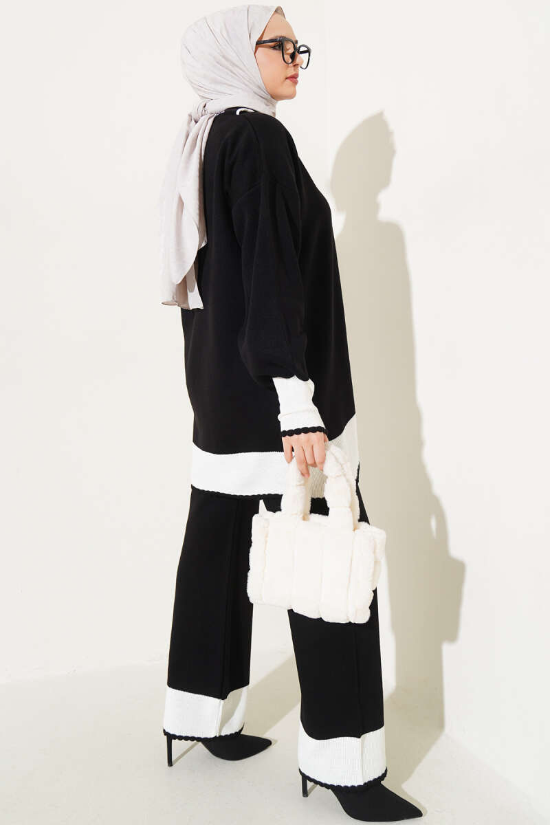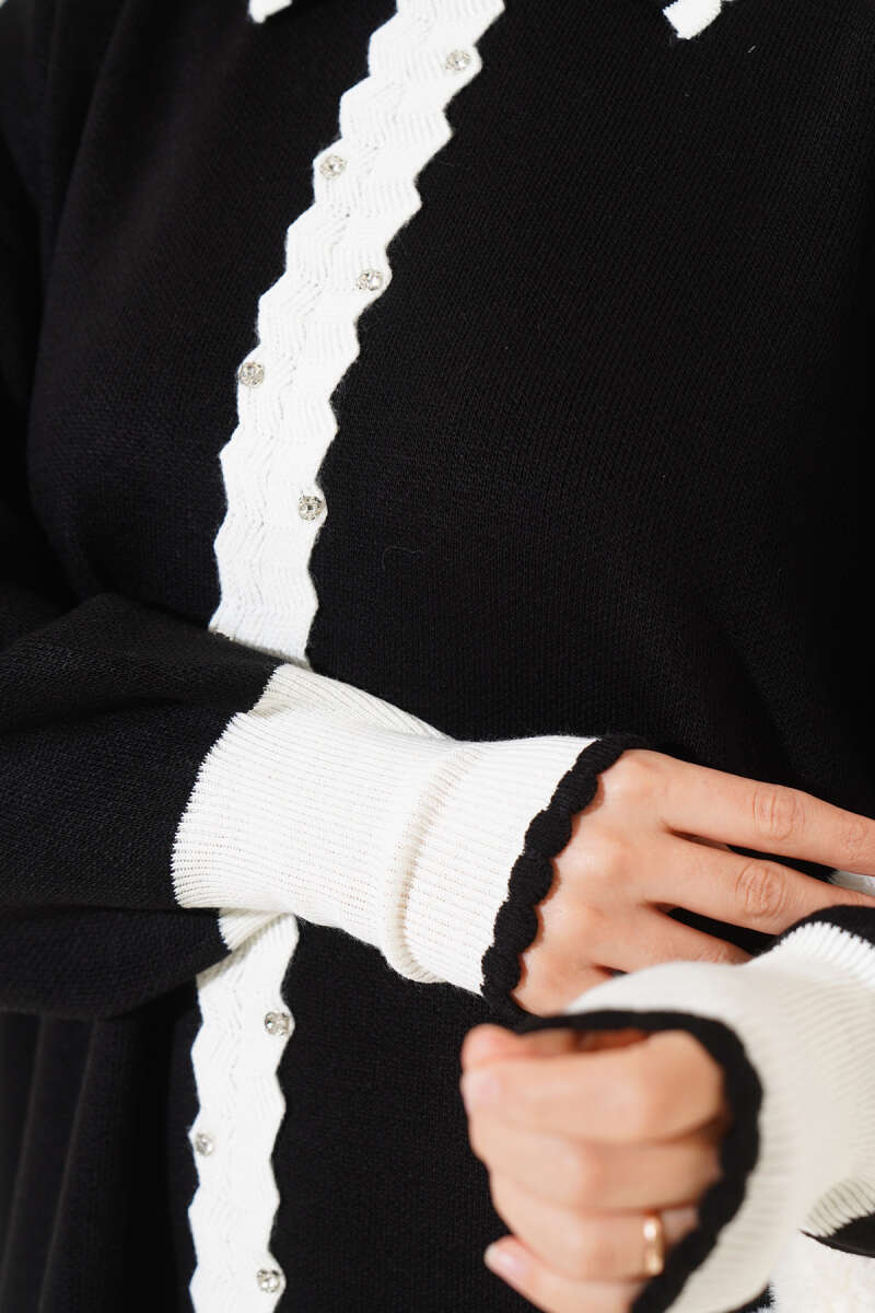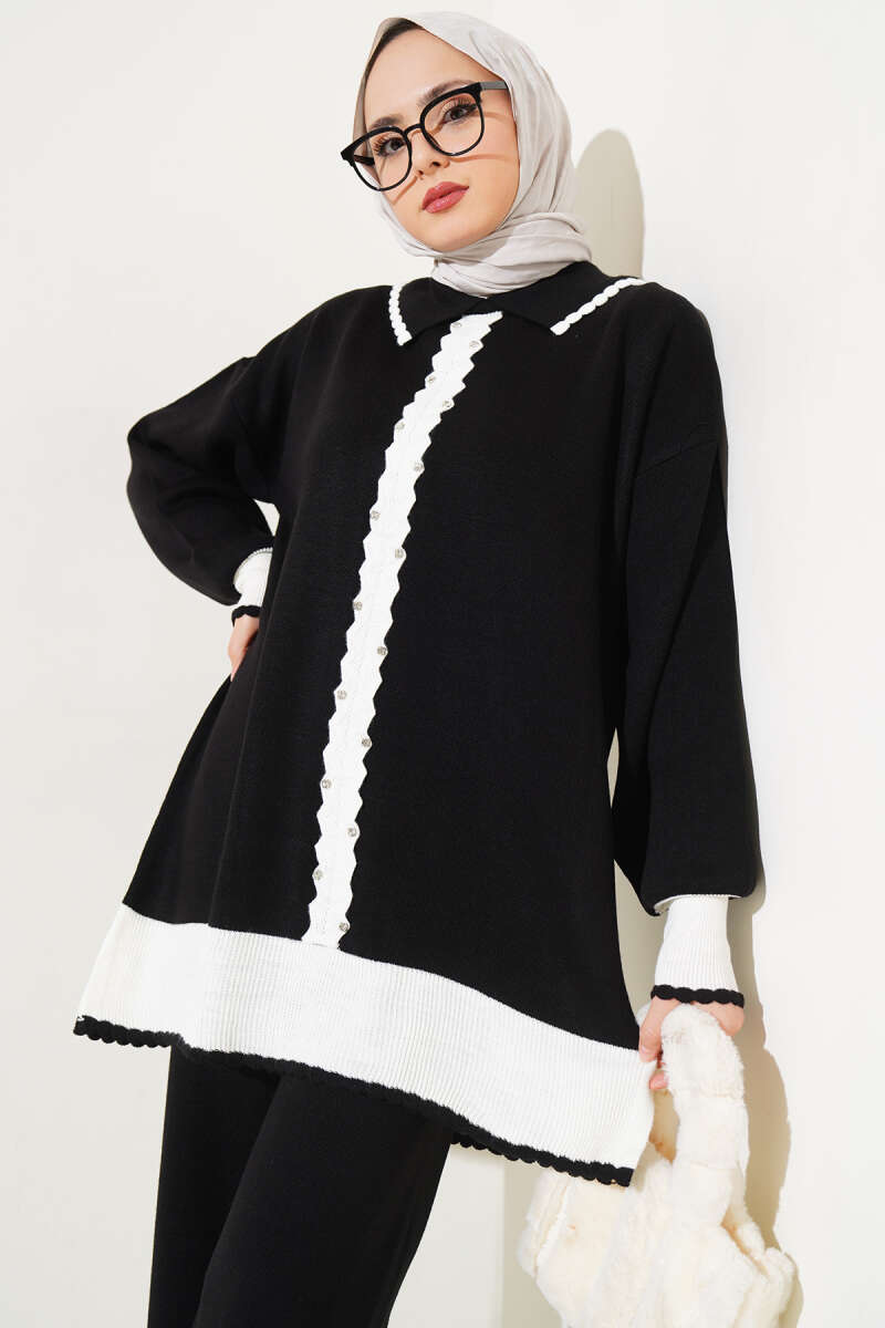 Çoban Dikiş Detaylı Triko Tunik Siyah
