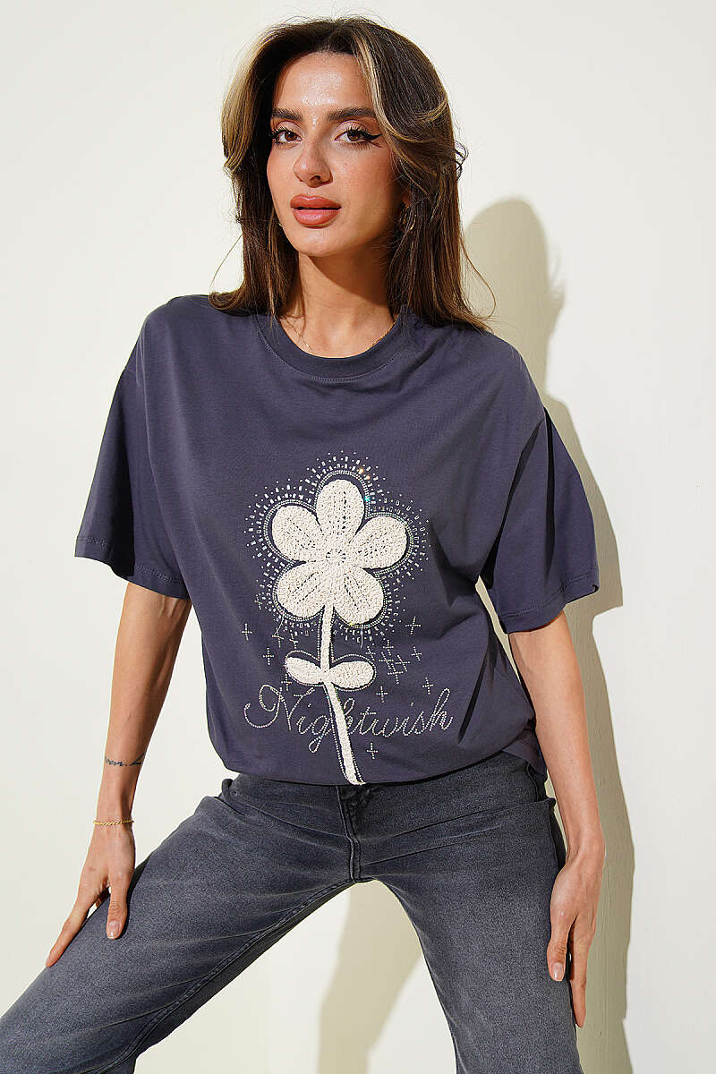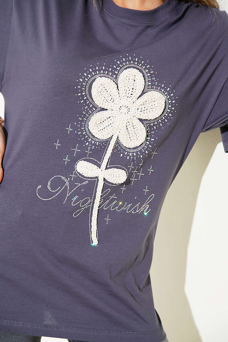 Mini Taş Detaylı Kot Pantolon Açık Mavi