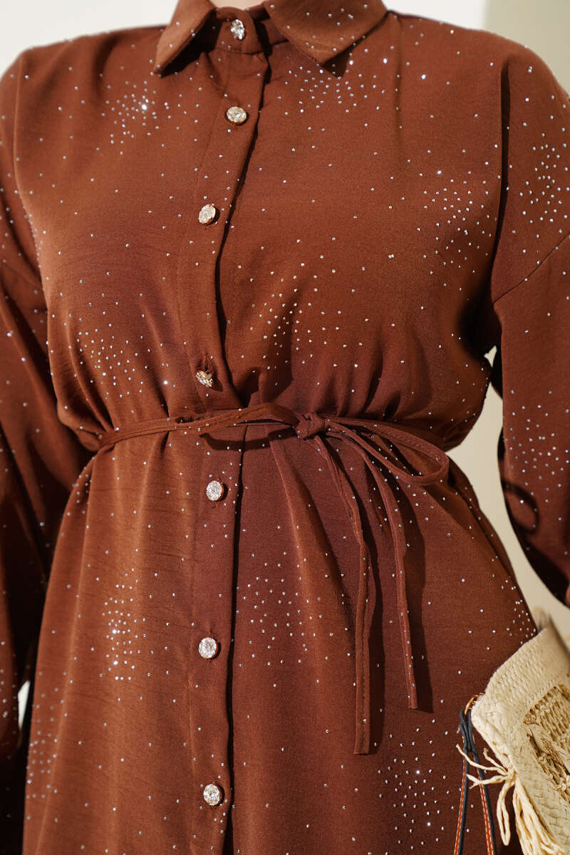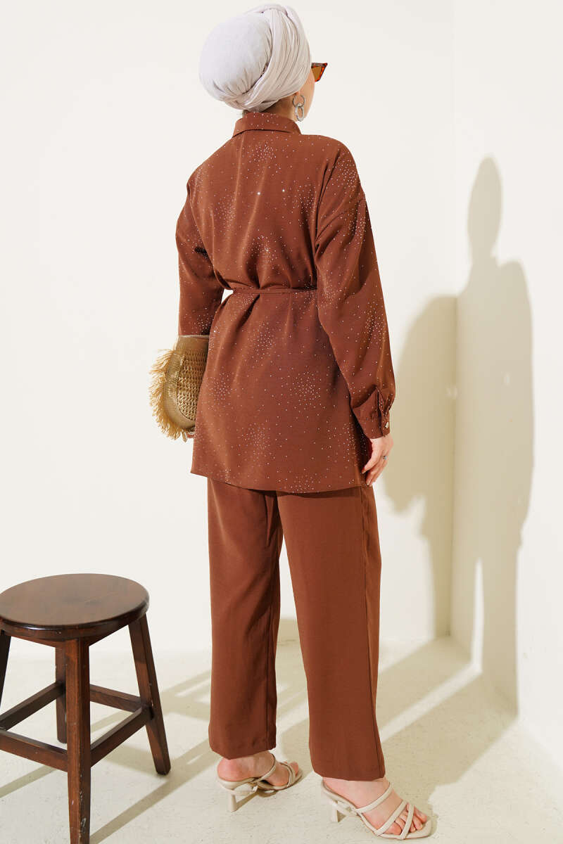 Taşlı İp Kuşaklı İkili Takım Kahve
