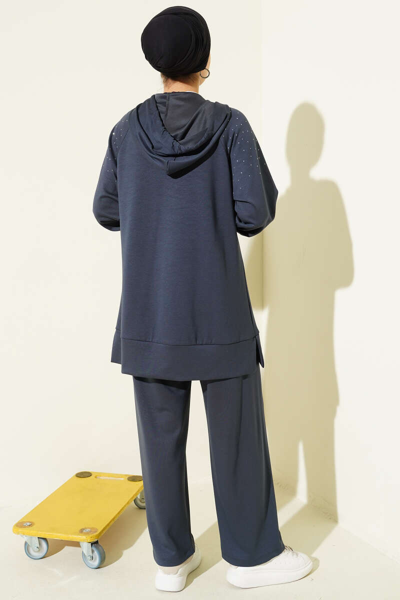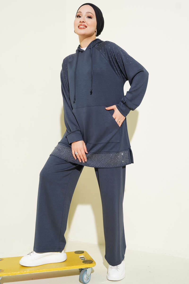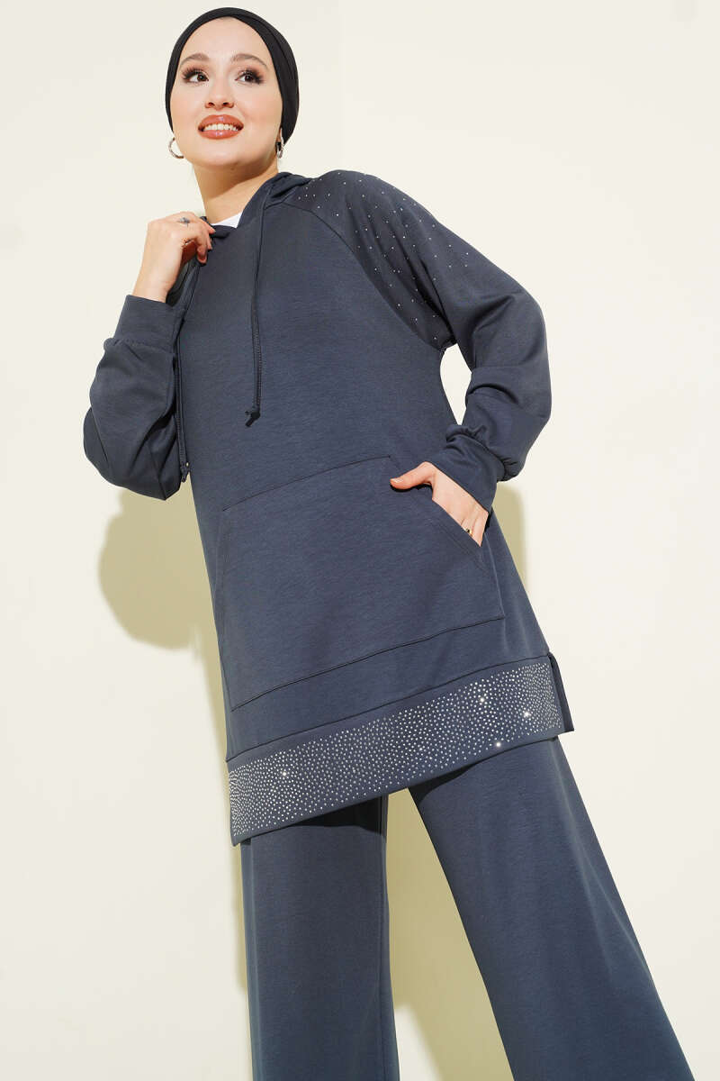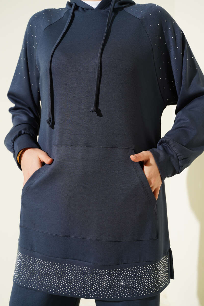 Taşlı Kanguru Cepli Loyşa İkili Takım Lacivert