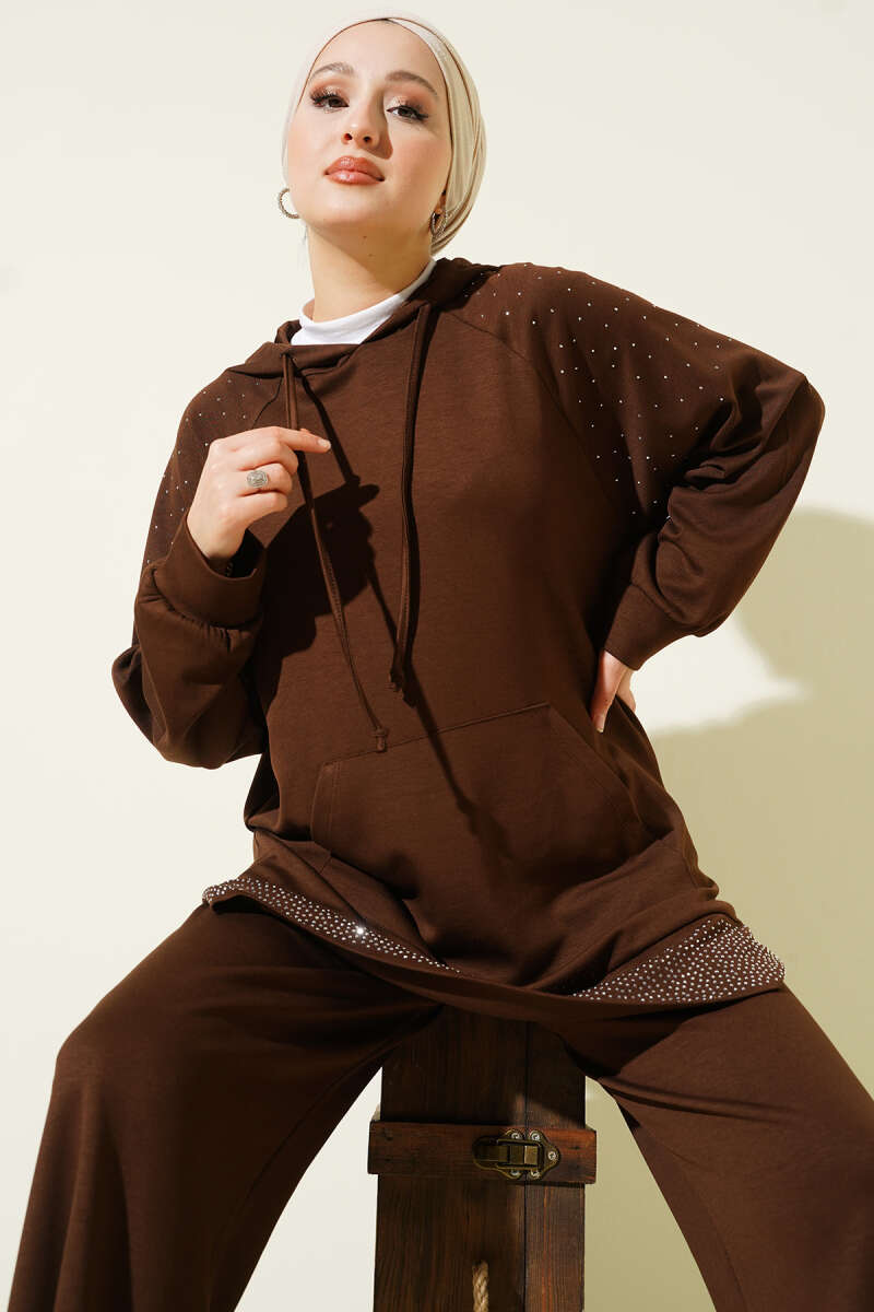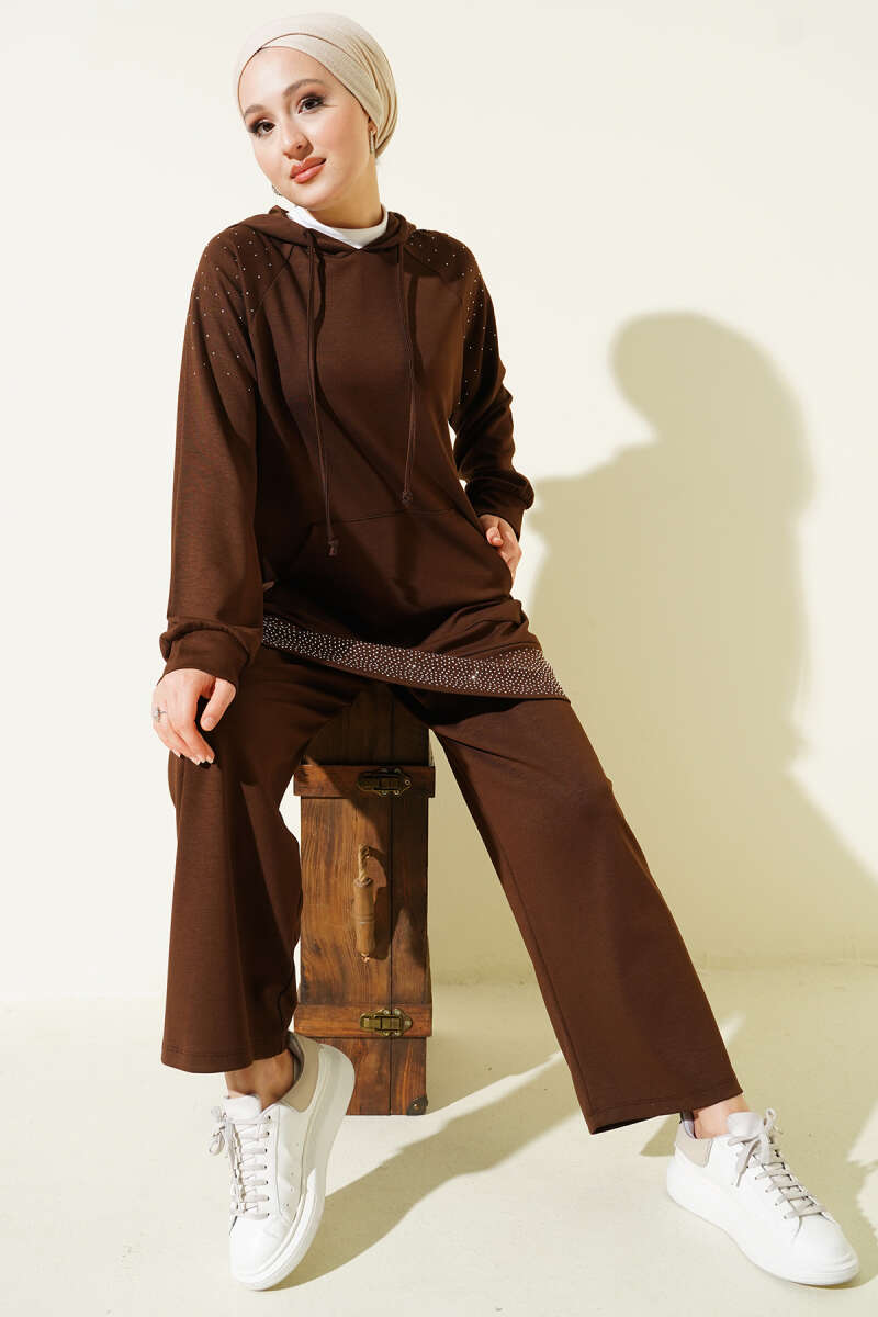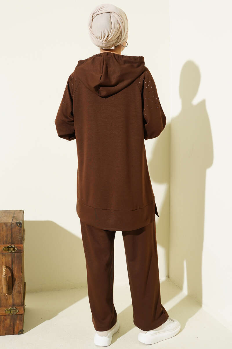 Taşlı Kanguru Cepli Loyşa İkili Takım Vizon
