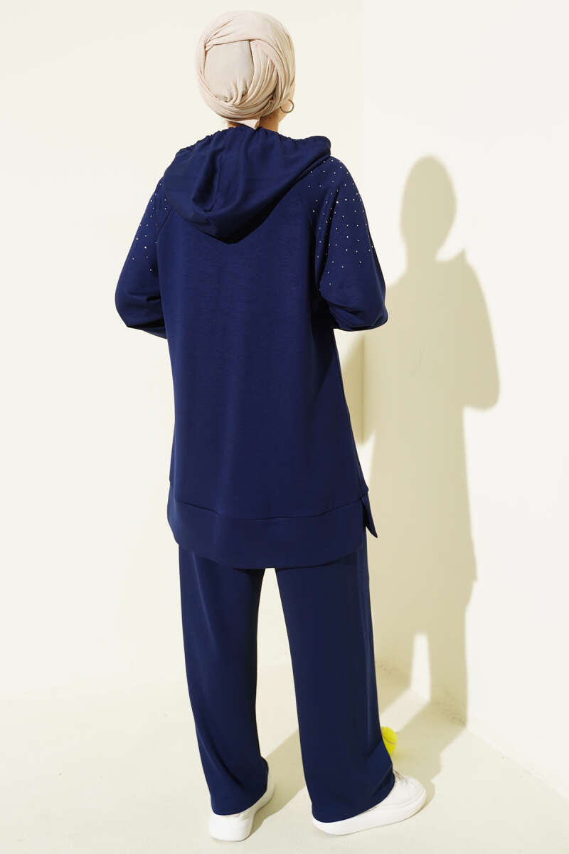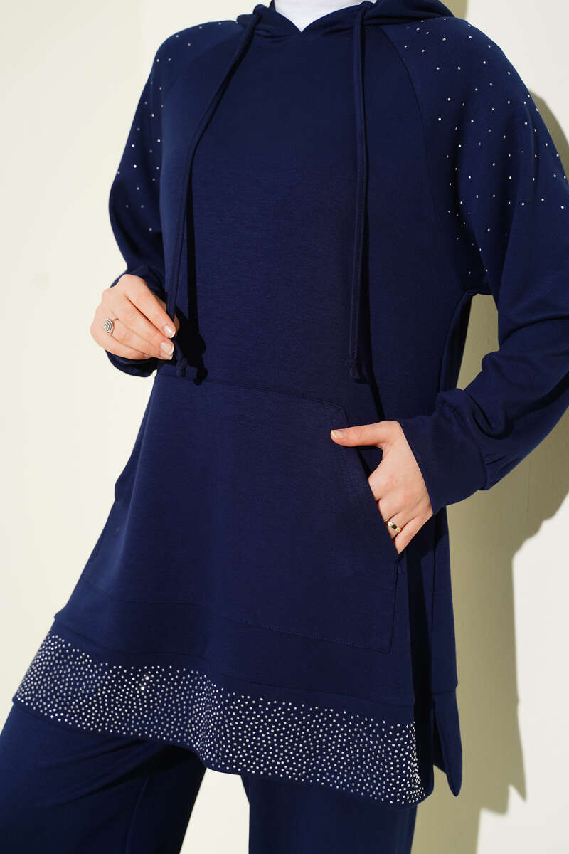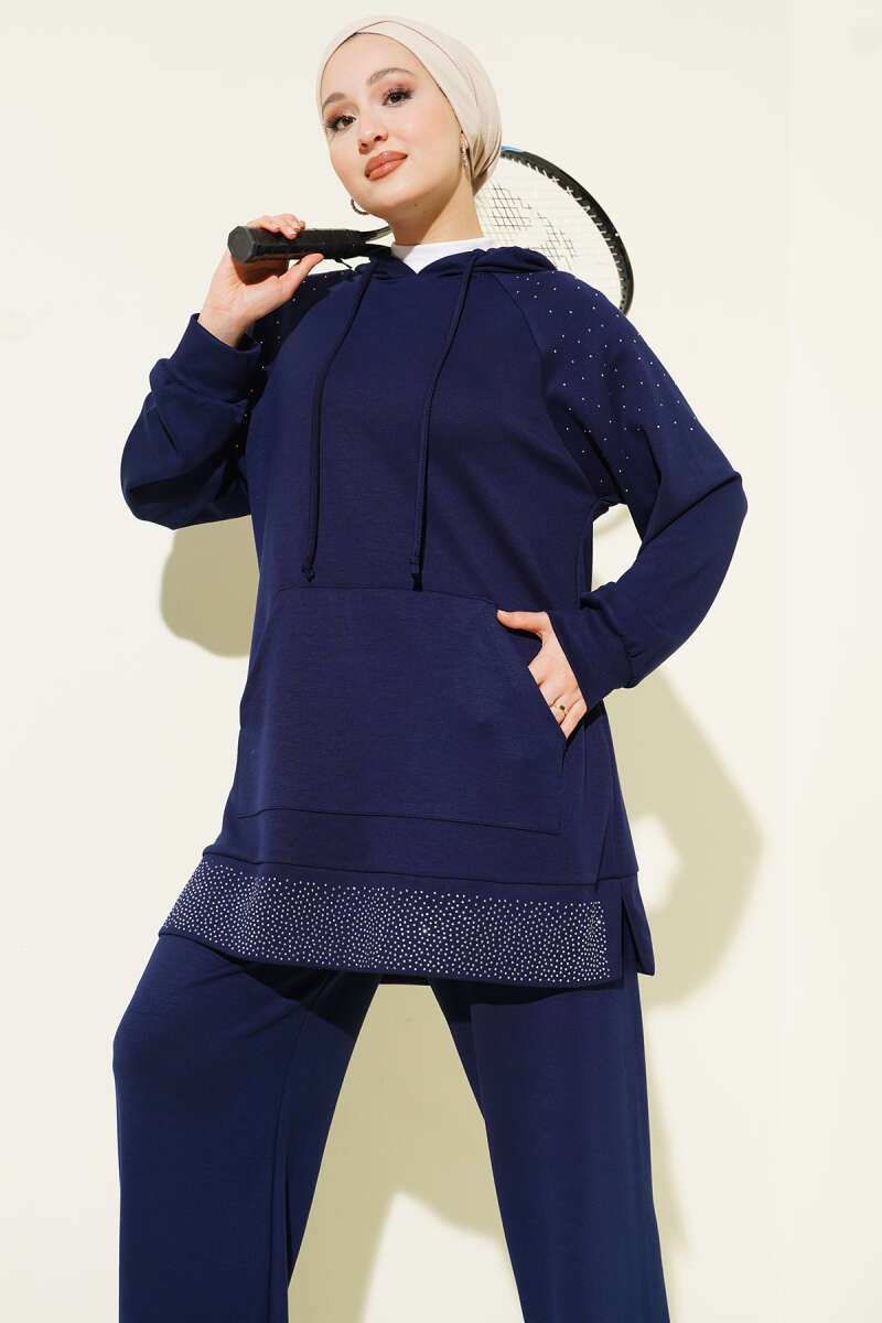 Taşlı Kanguru Cepli Loyşa İkili Takım Siyah