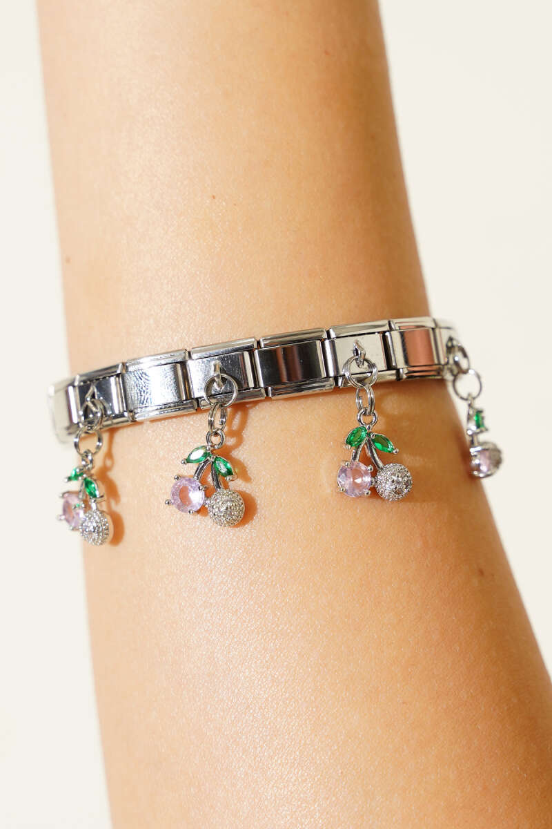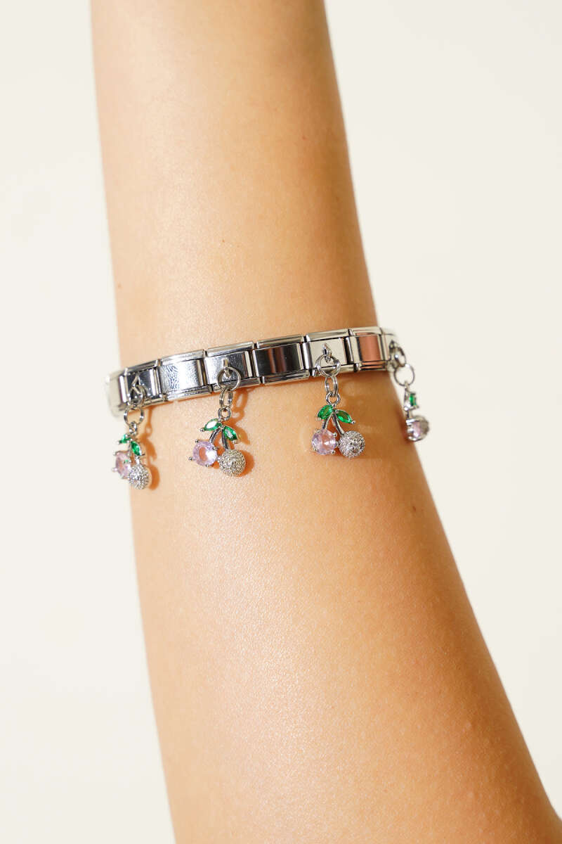 Taşlı Kiraz Charmlı İtalyan Bileklik Pembe