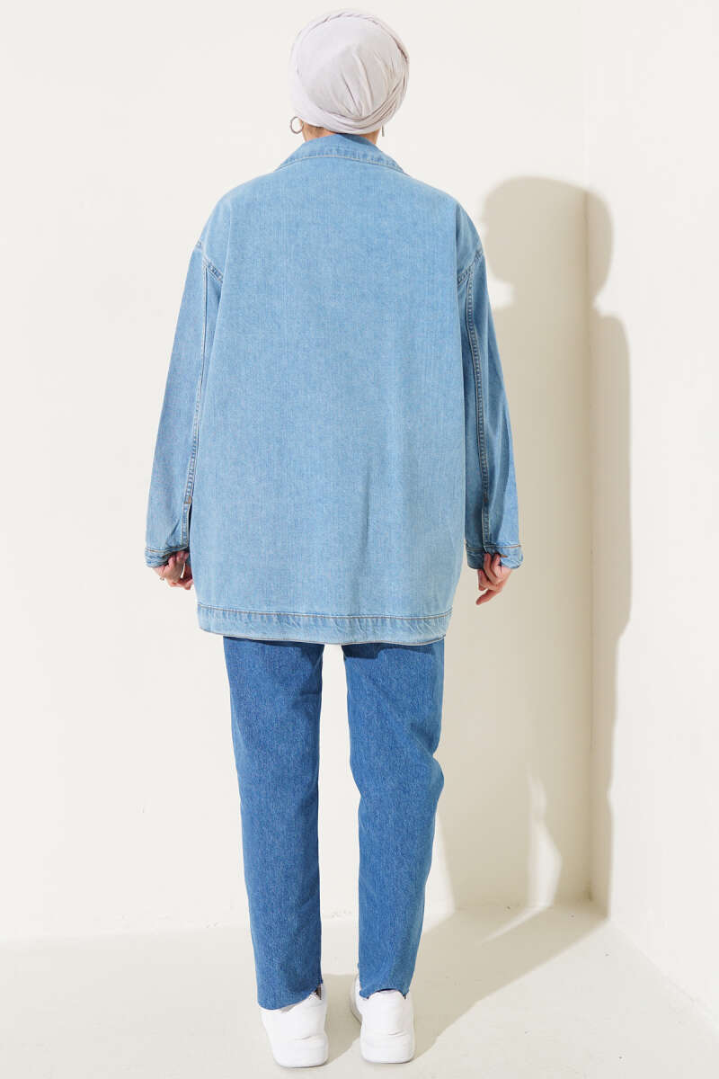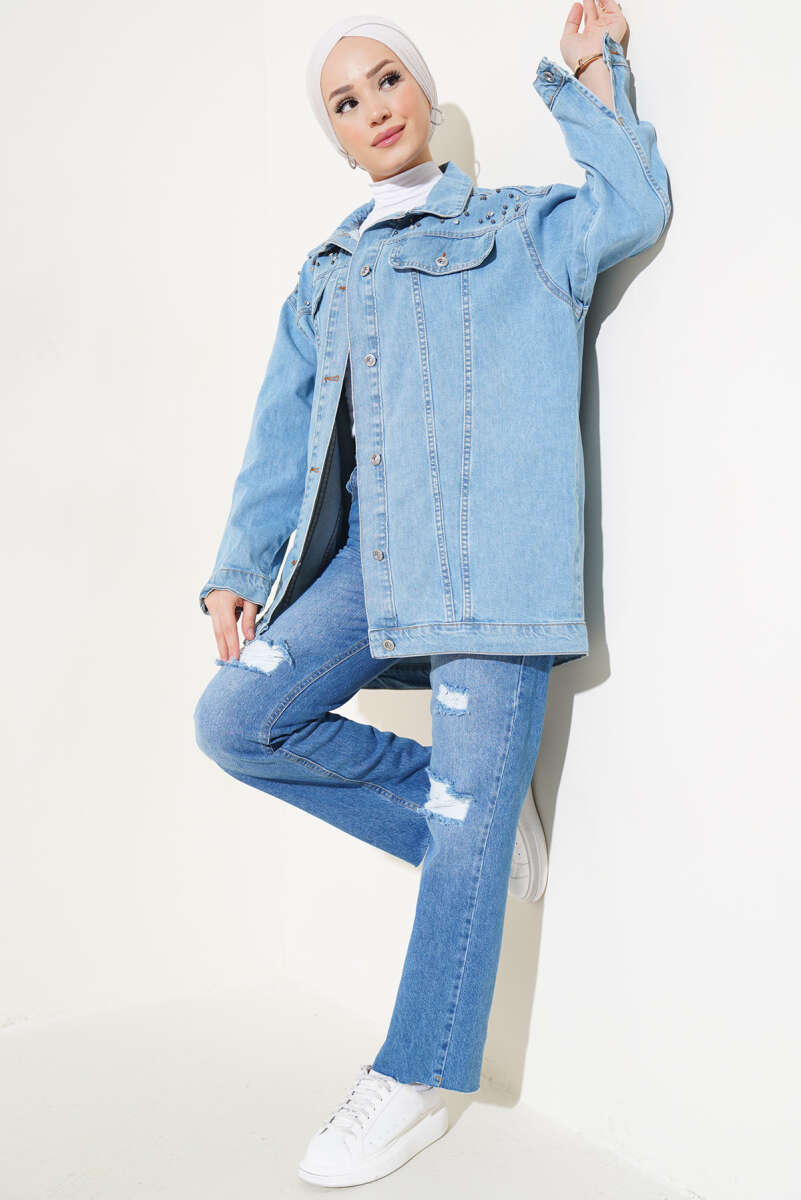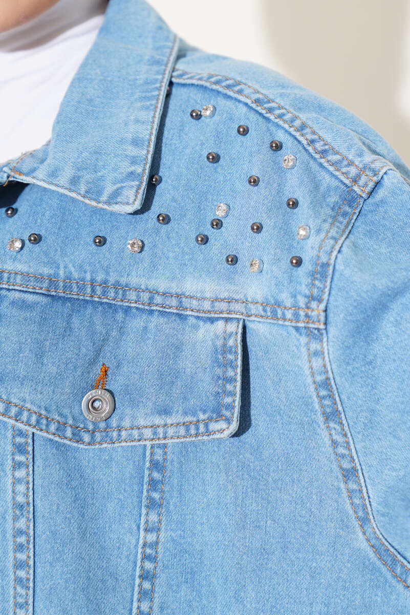 Taşlı Kot Ceket Mavi