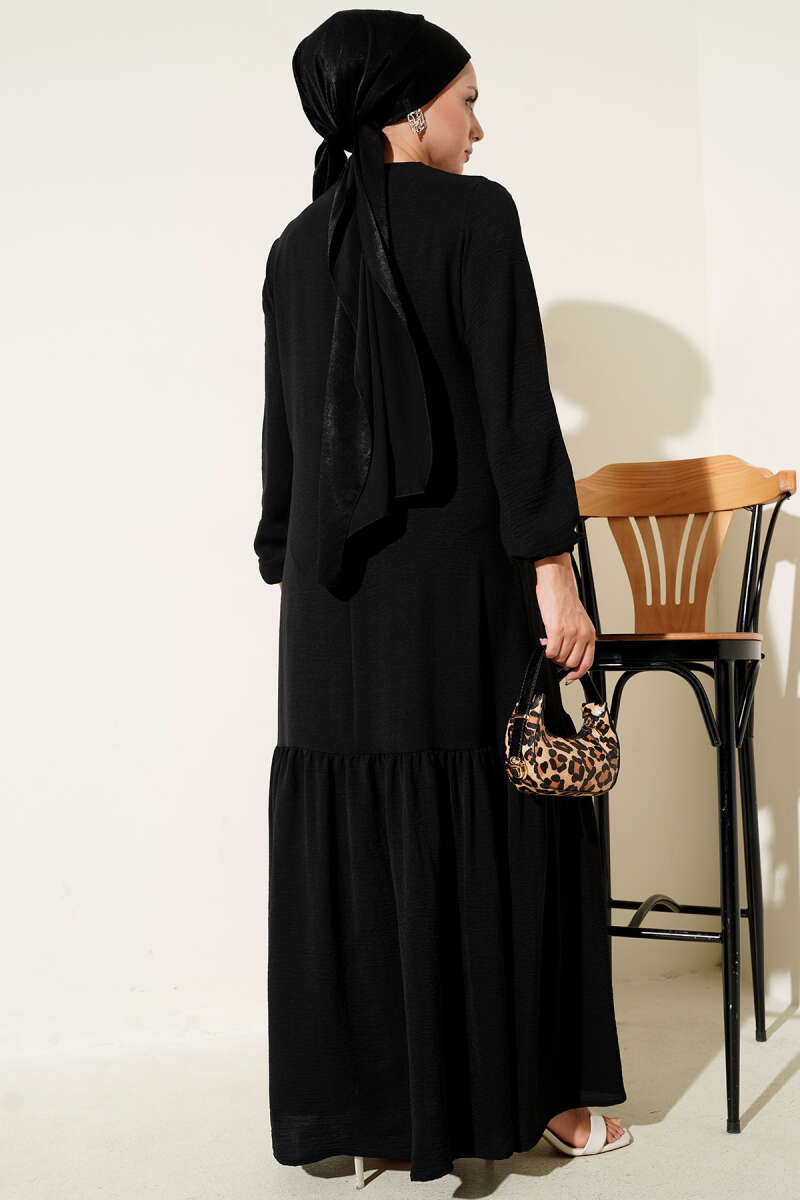 Gömlek Yaka Düğmeli Triko Elbise Siyah
