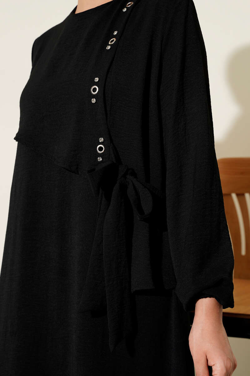 Çoban Dikiş Detaylı Triko Tunik Siyah