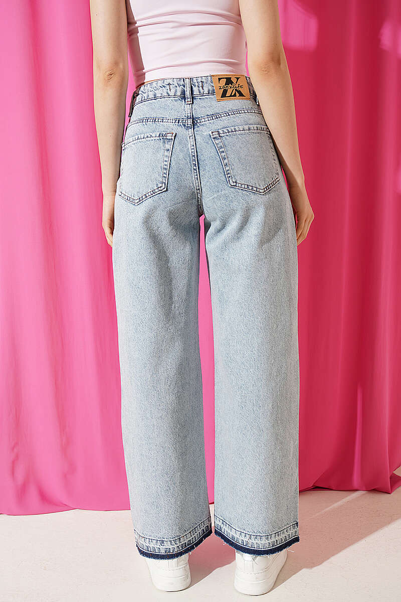 Taşlı Paça Sökük Palazzo Kot Pantolon Açık Kar