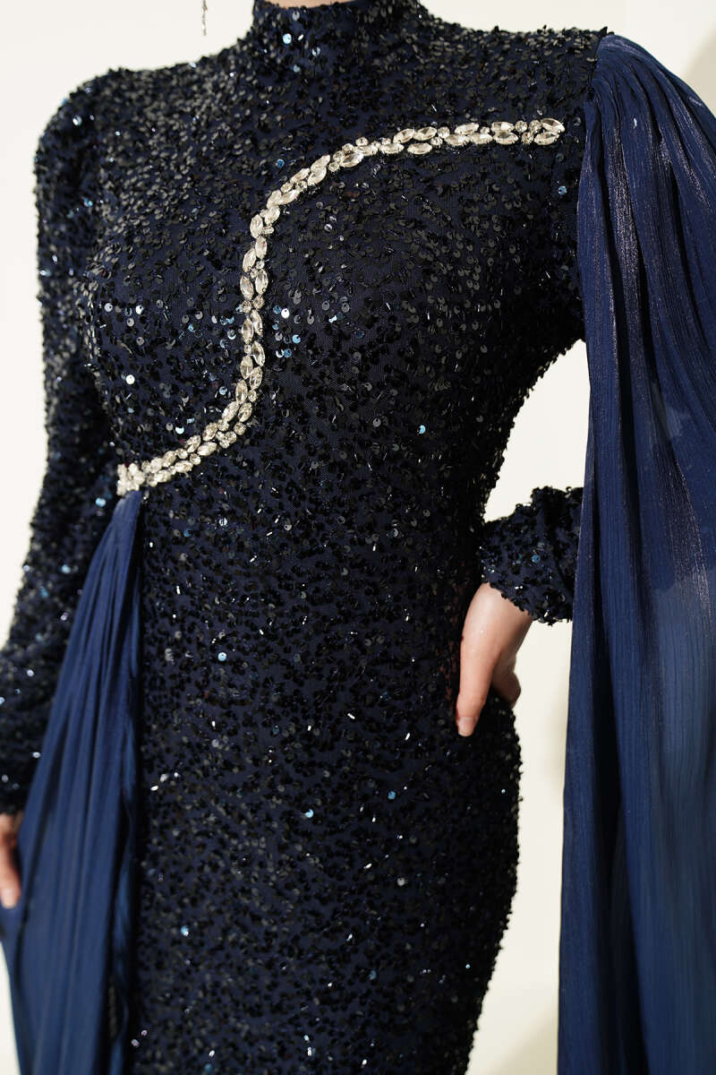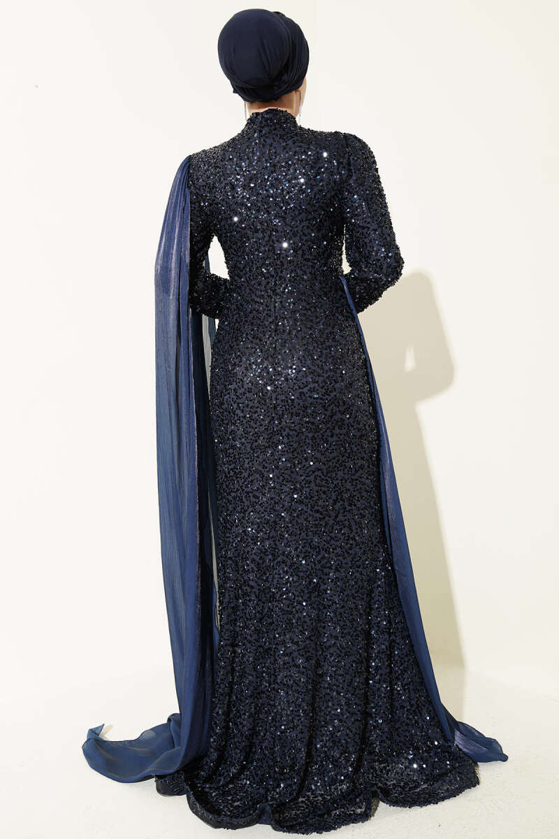 Taşlı Pul Payetli Pelerinli Abiye Elbise Bakır