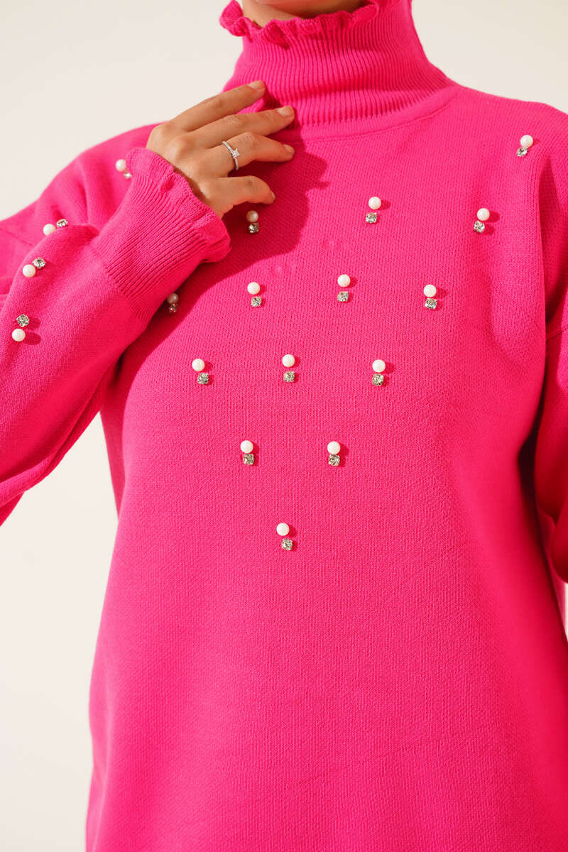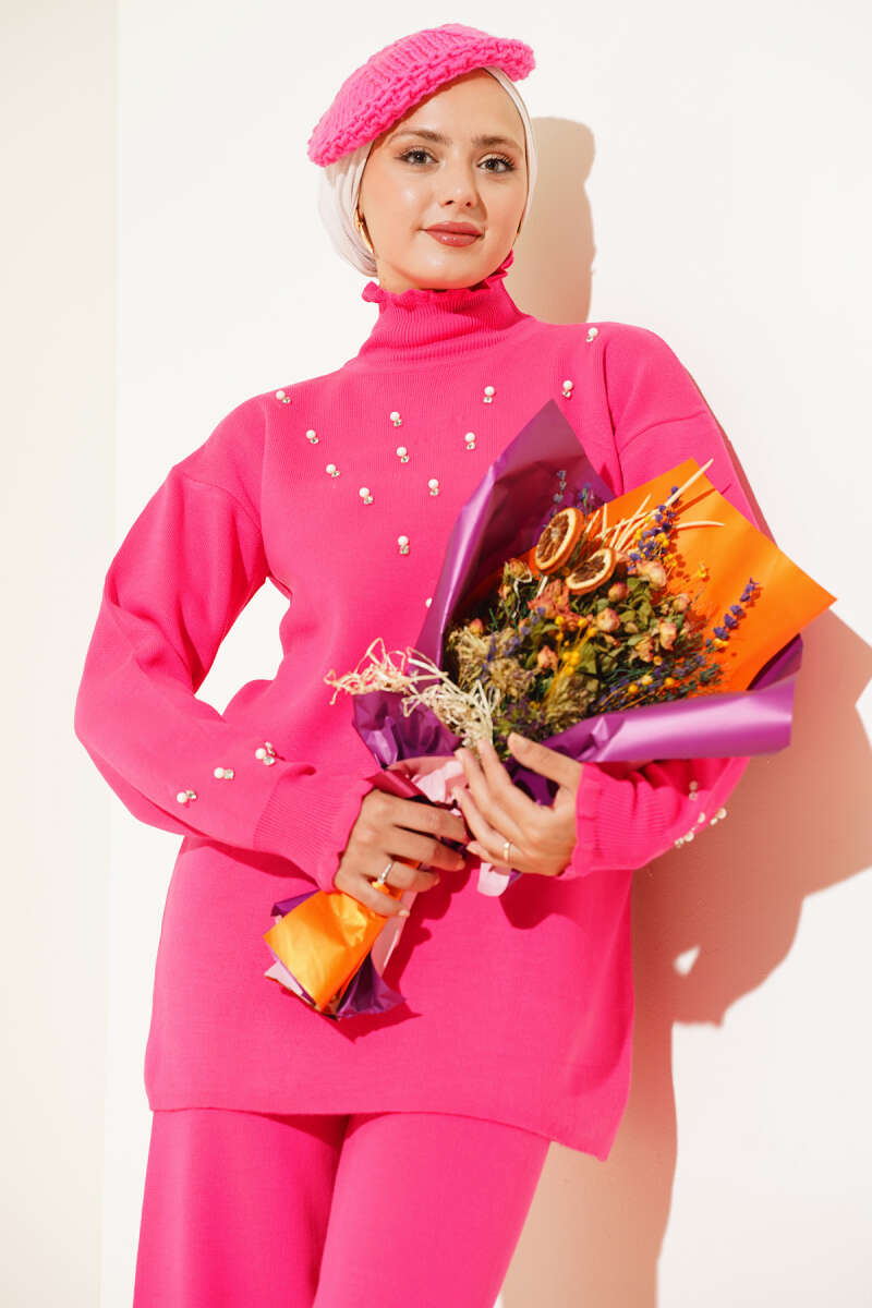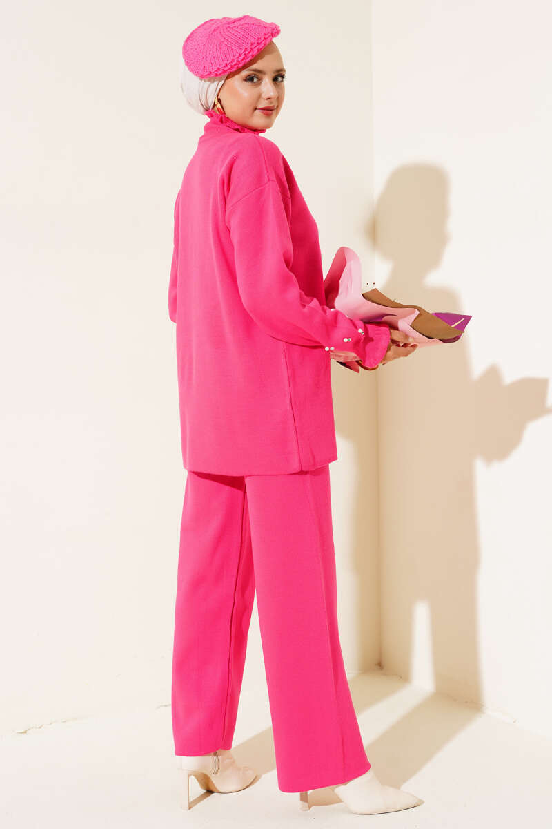 Balon Kol Balıkçı Yaka Triko İkili Takım Taş