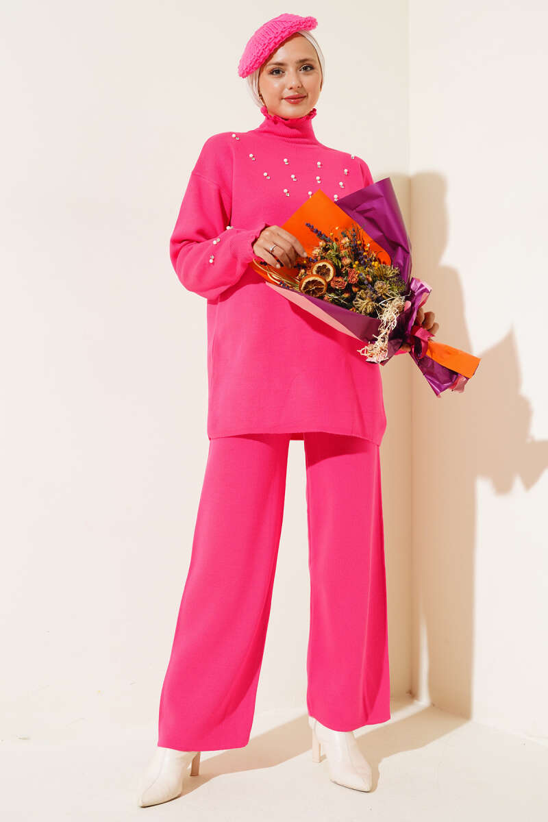 Taşlı Baklava Desen Triko İkili Takım Zümrüt