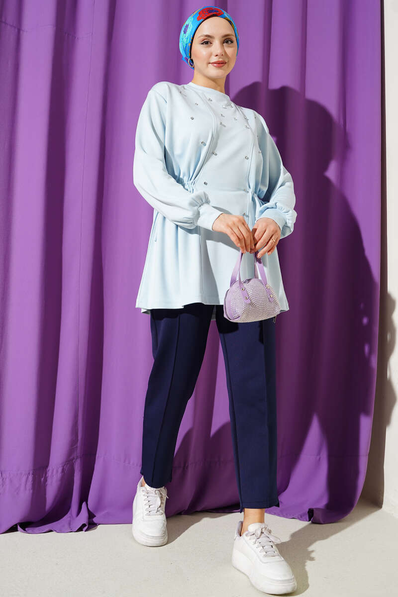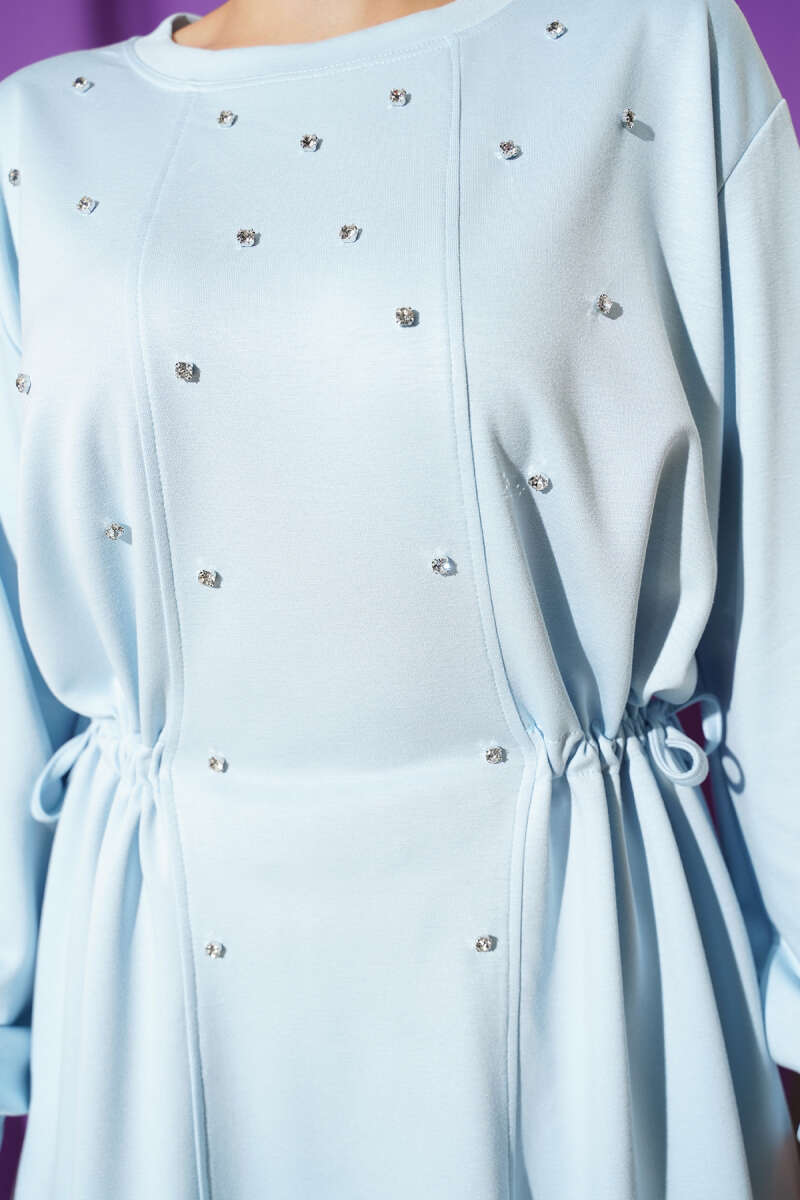 Taşlı Yan Bağlamalı Loyşa Tunik Buz Mavisi