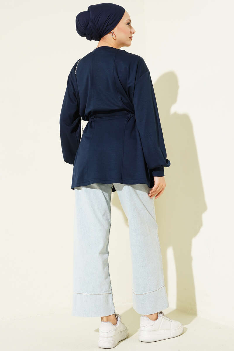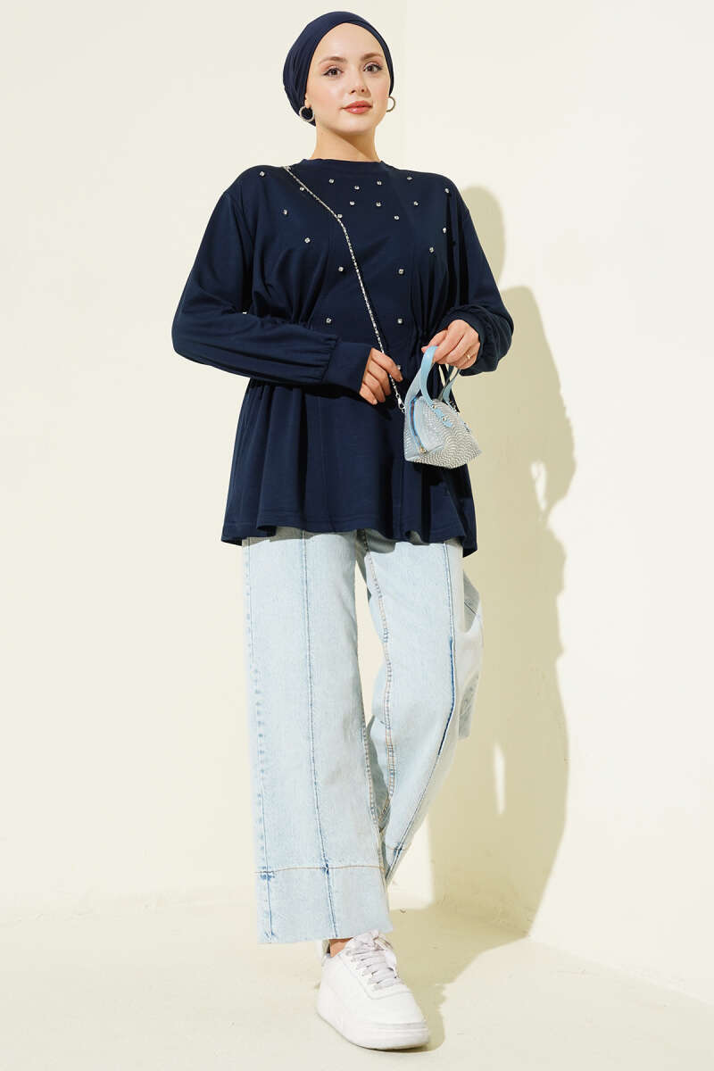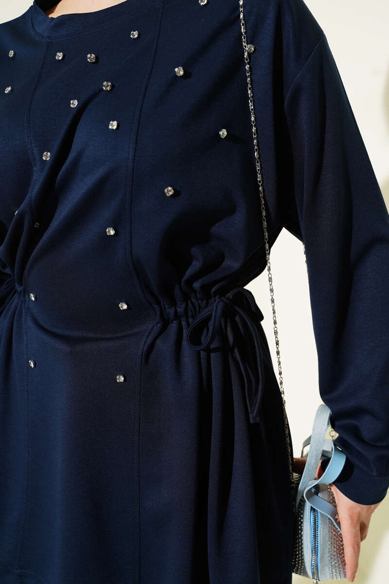 Dik Şerit Taşlı Loyşa Tunik Lacivert