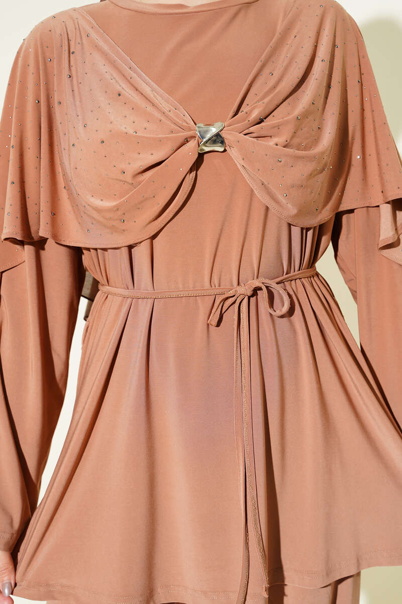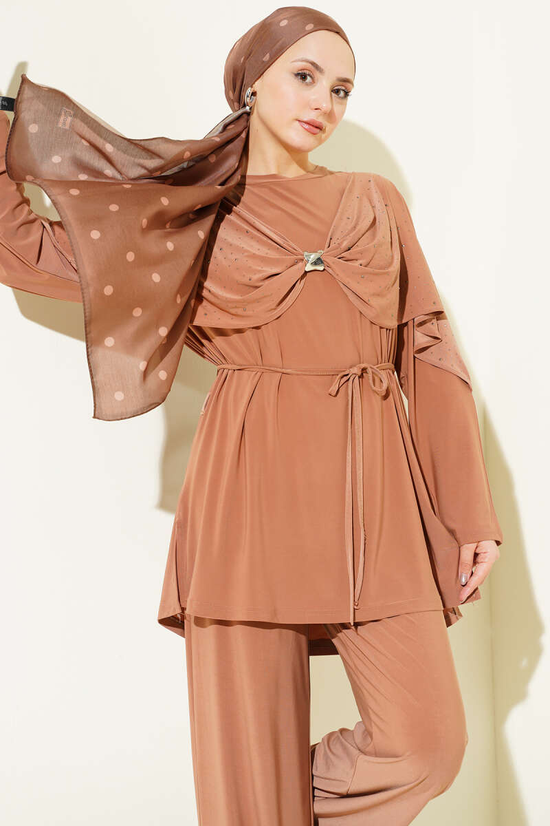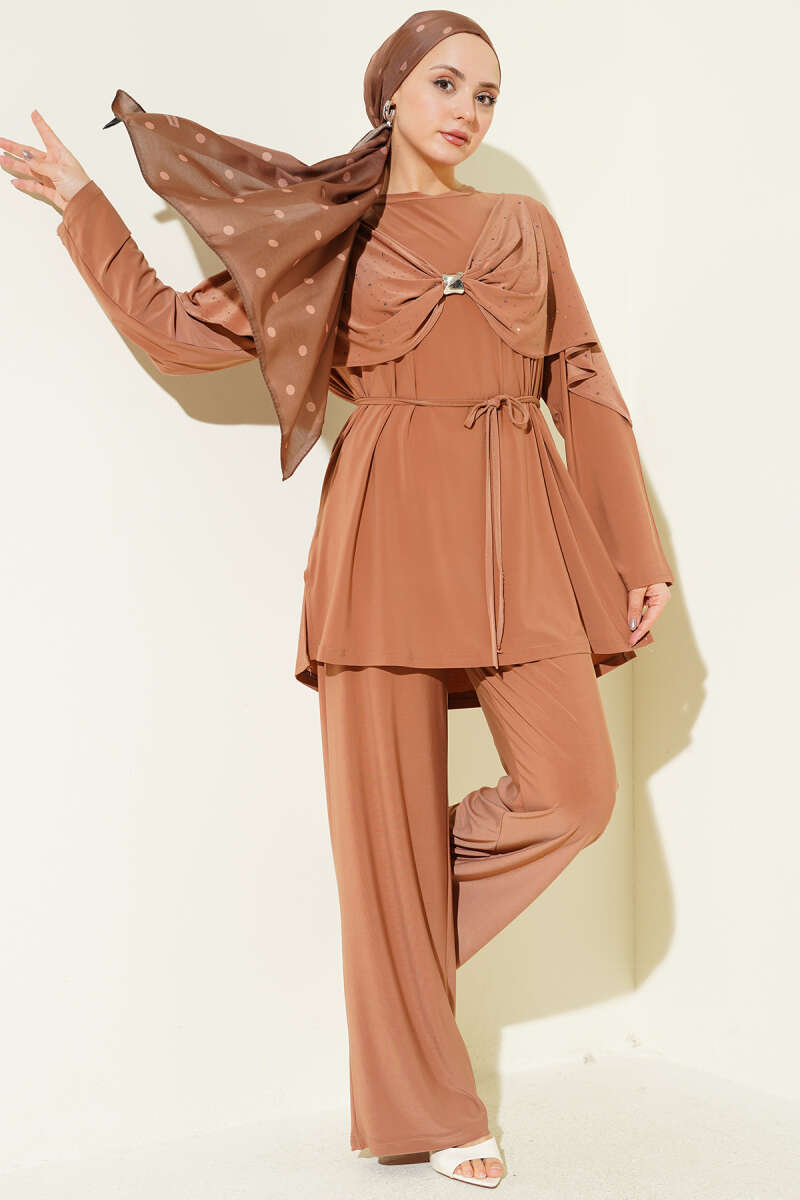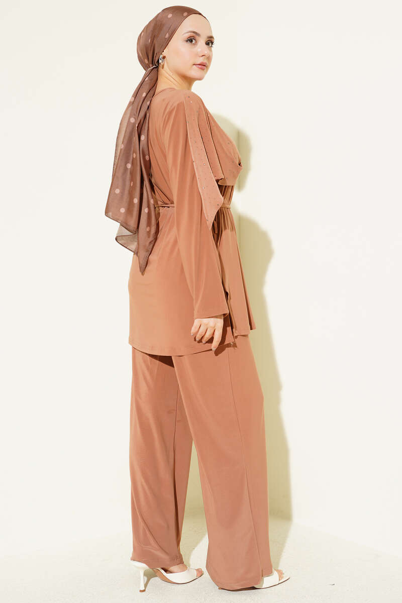 Taşlı Yan Yırtmaçlı İkili Takım Latte