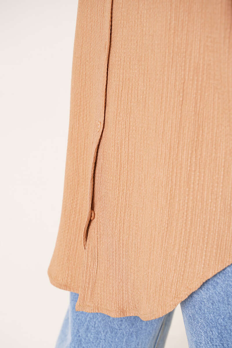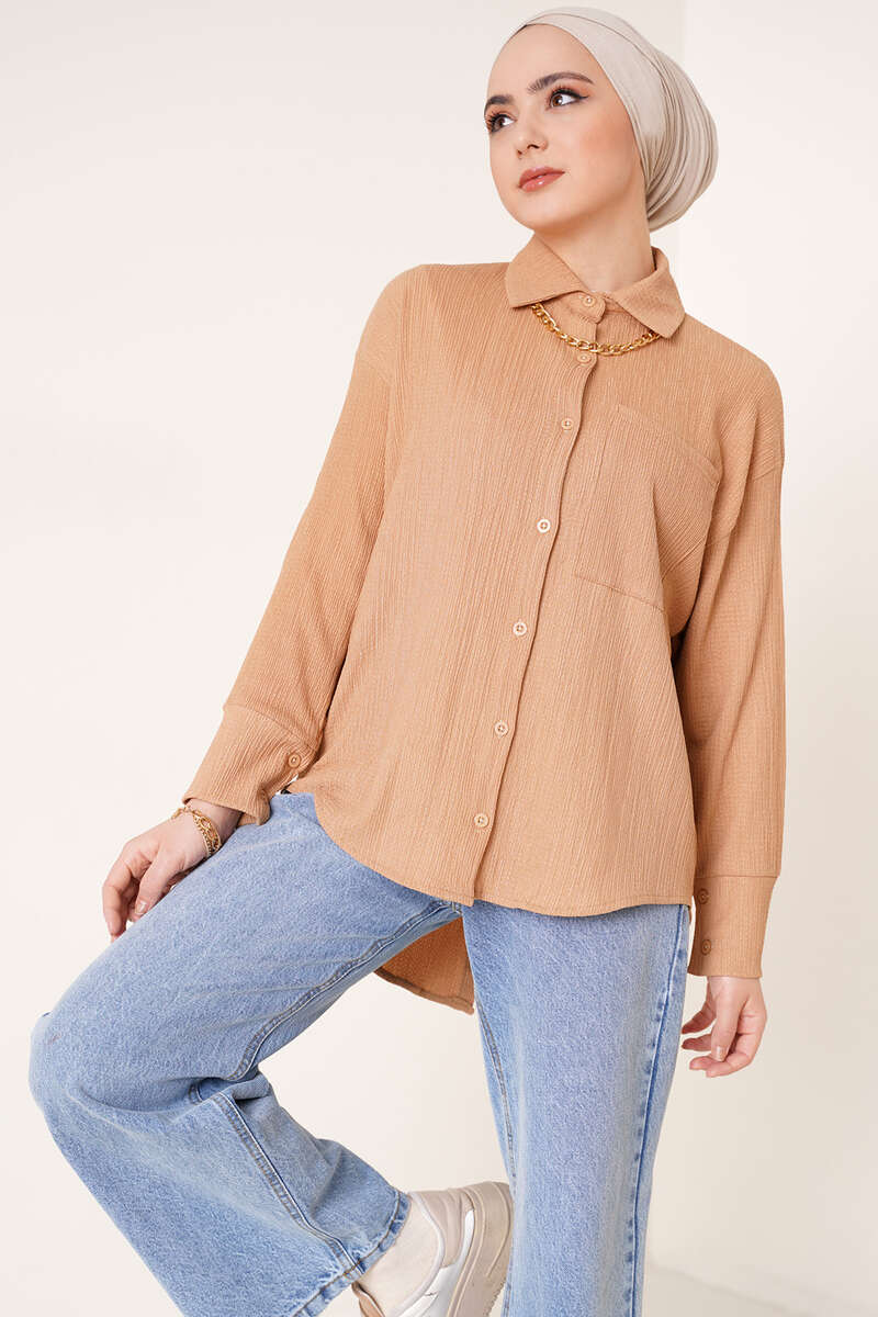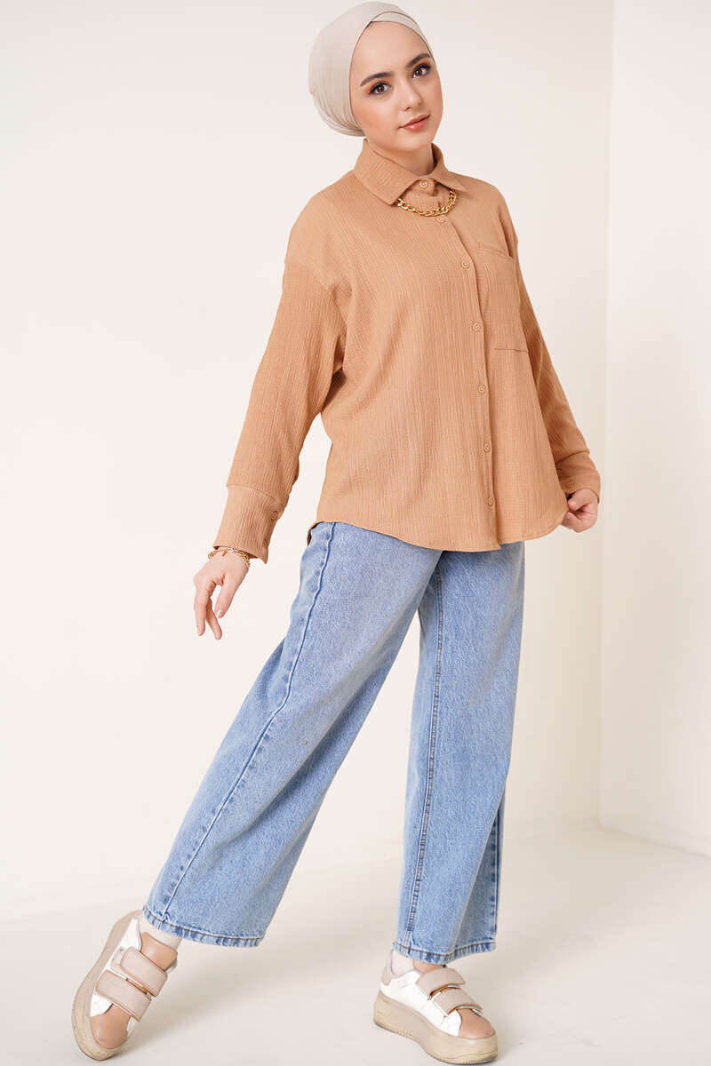 Tek Cep Bürümcük Gömlek Latte