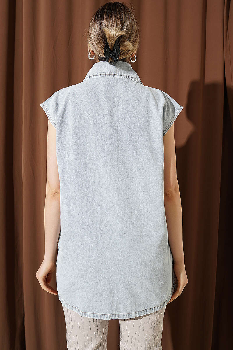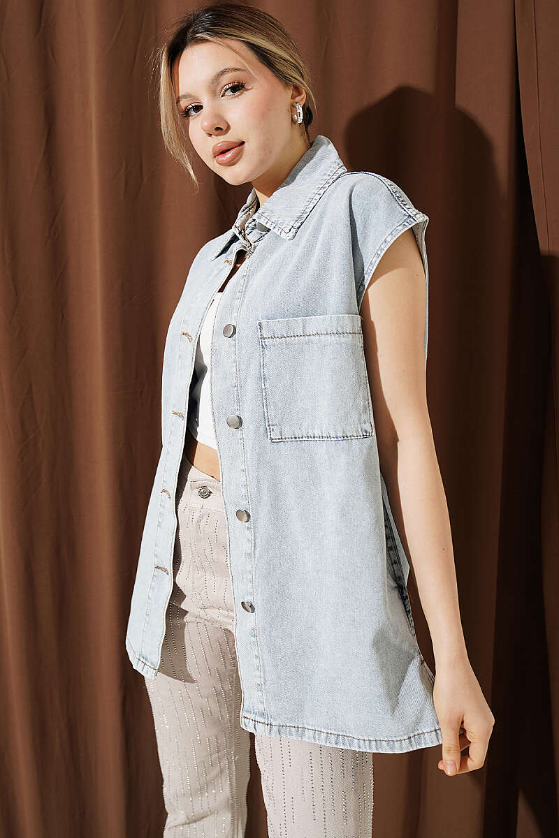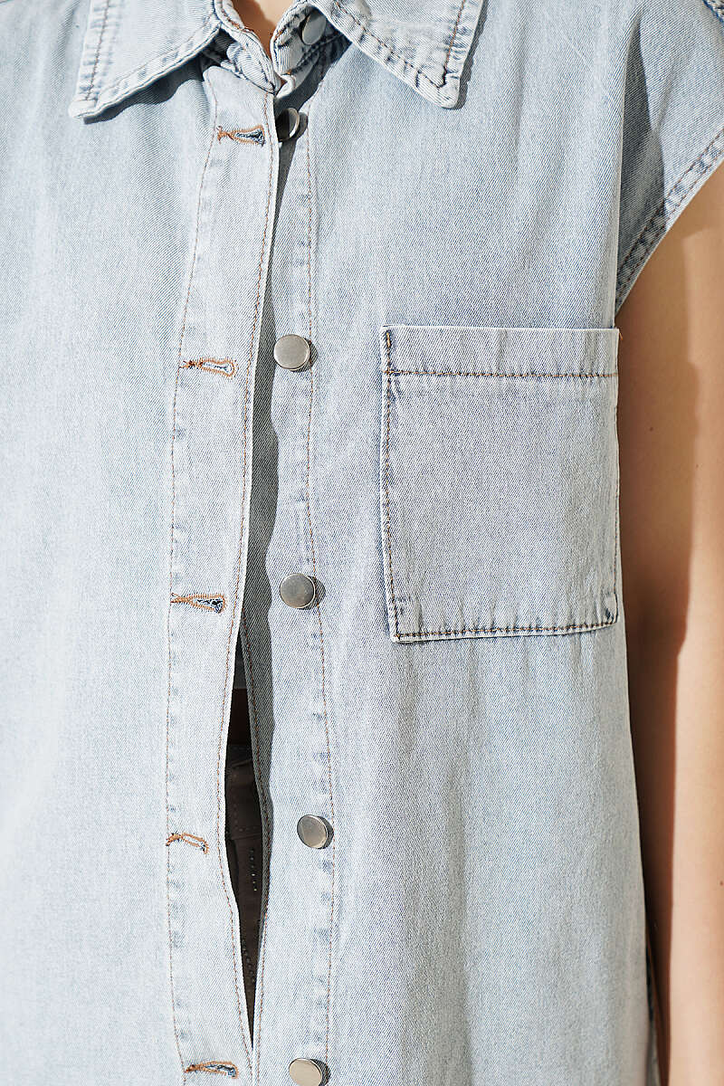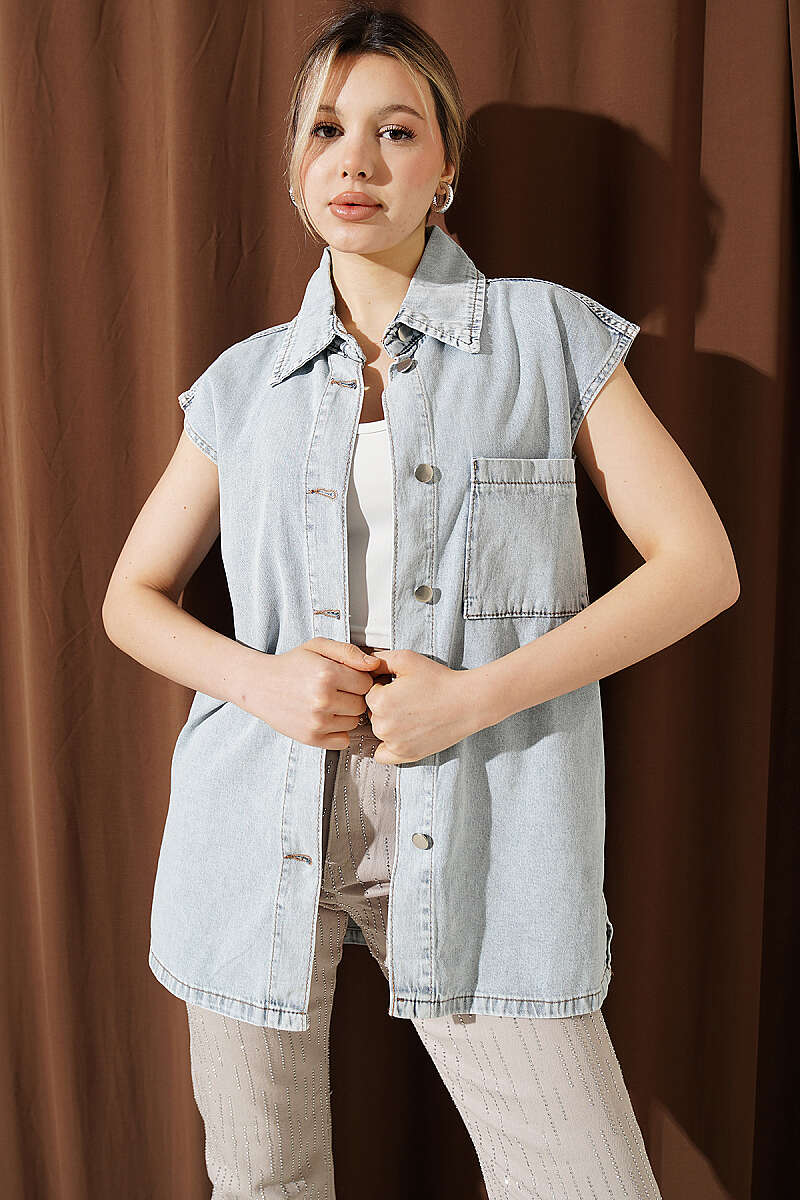 Tek Cep Detaylı Kot Yelek Açık Kar