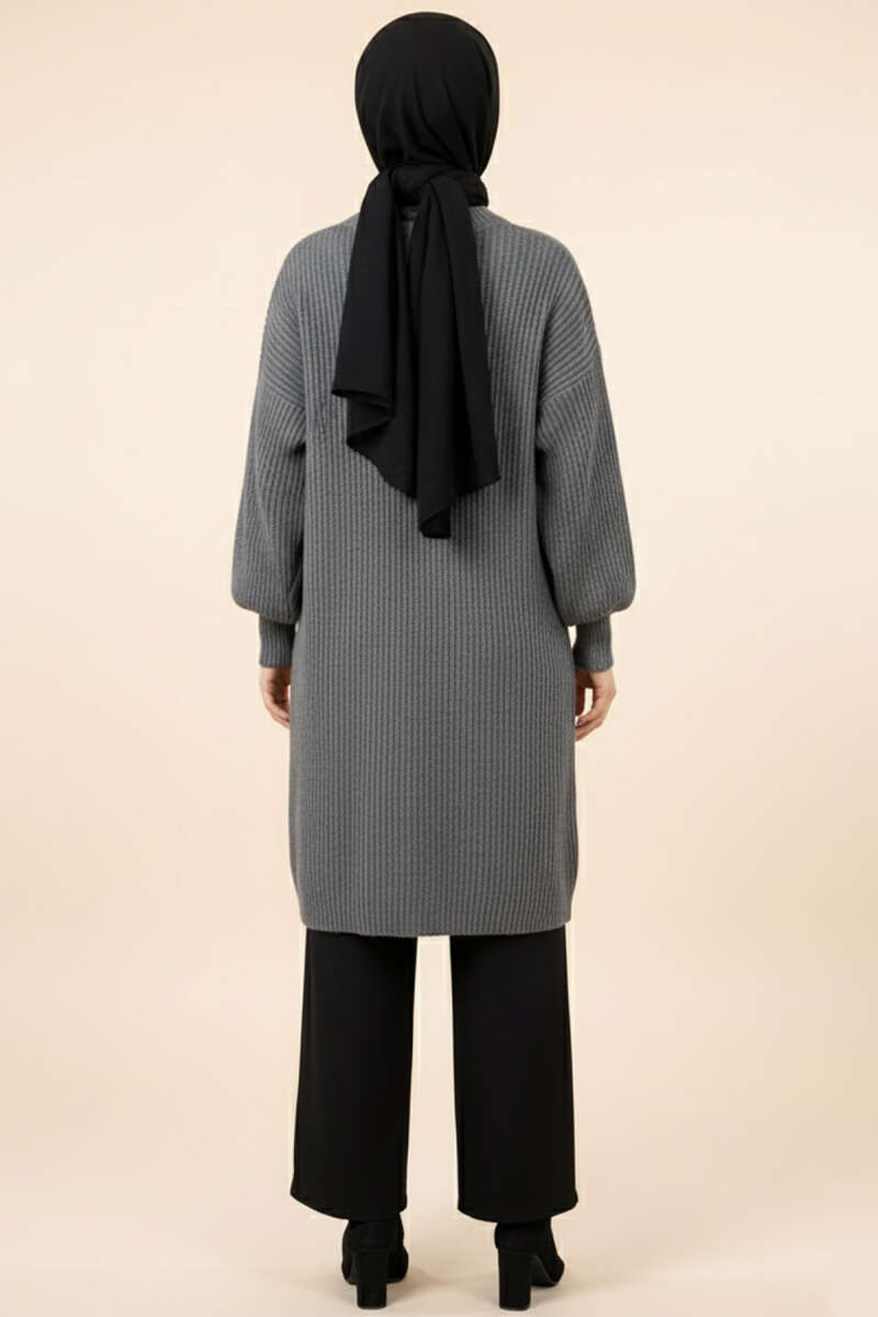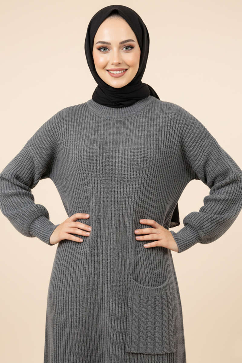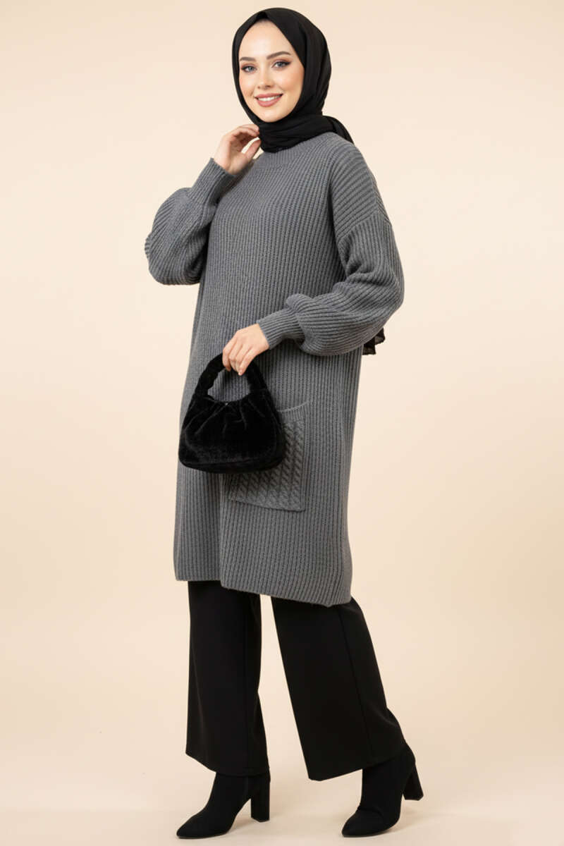Gömlek Yaka Tek Cepli Uzun Gömlek Saks