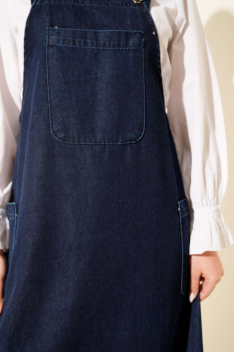 Tek Cepli Askılı Jile Kot Elbise Açık Mavi
