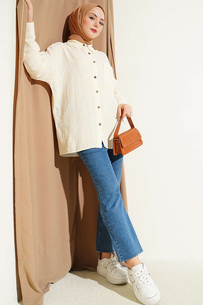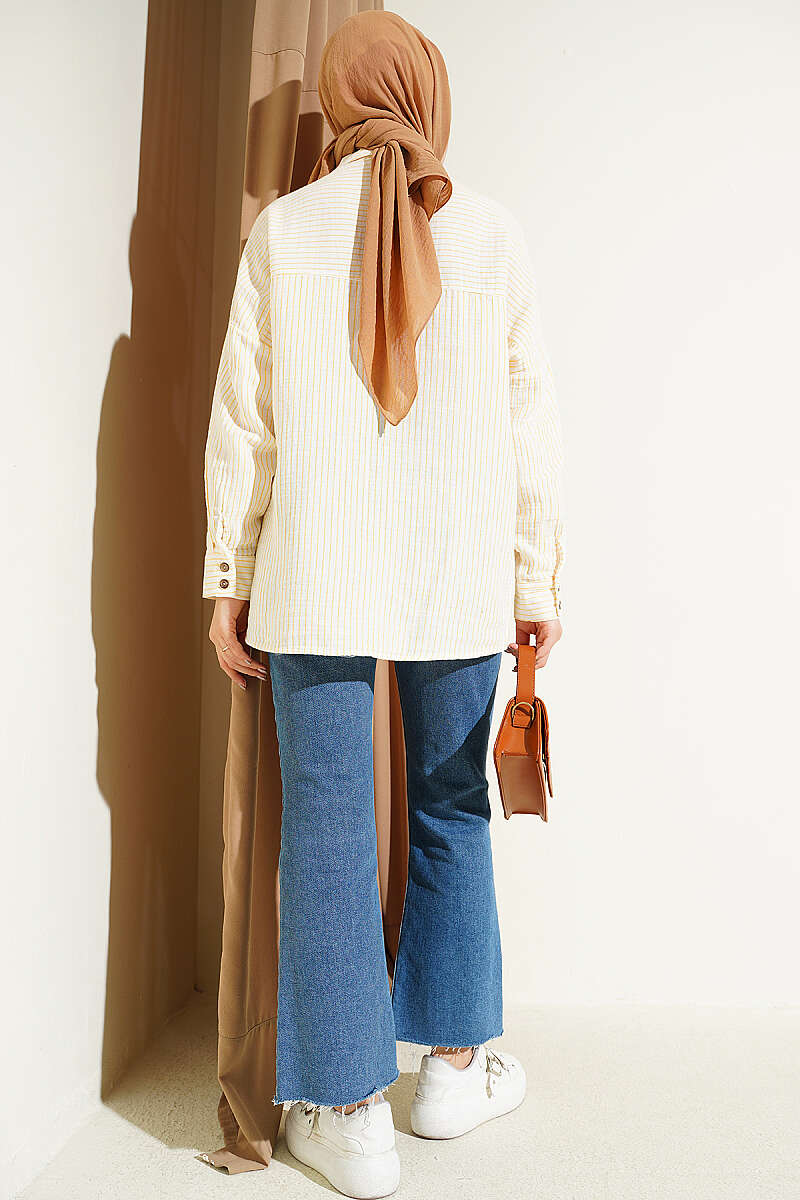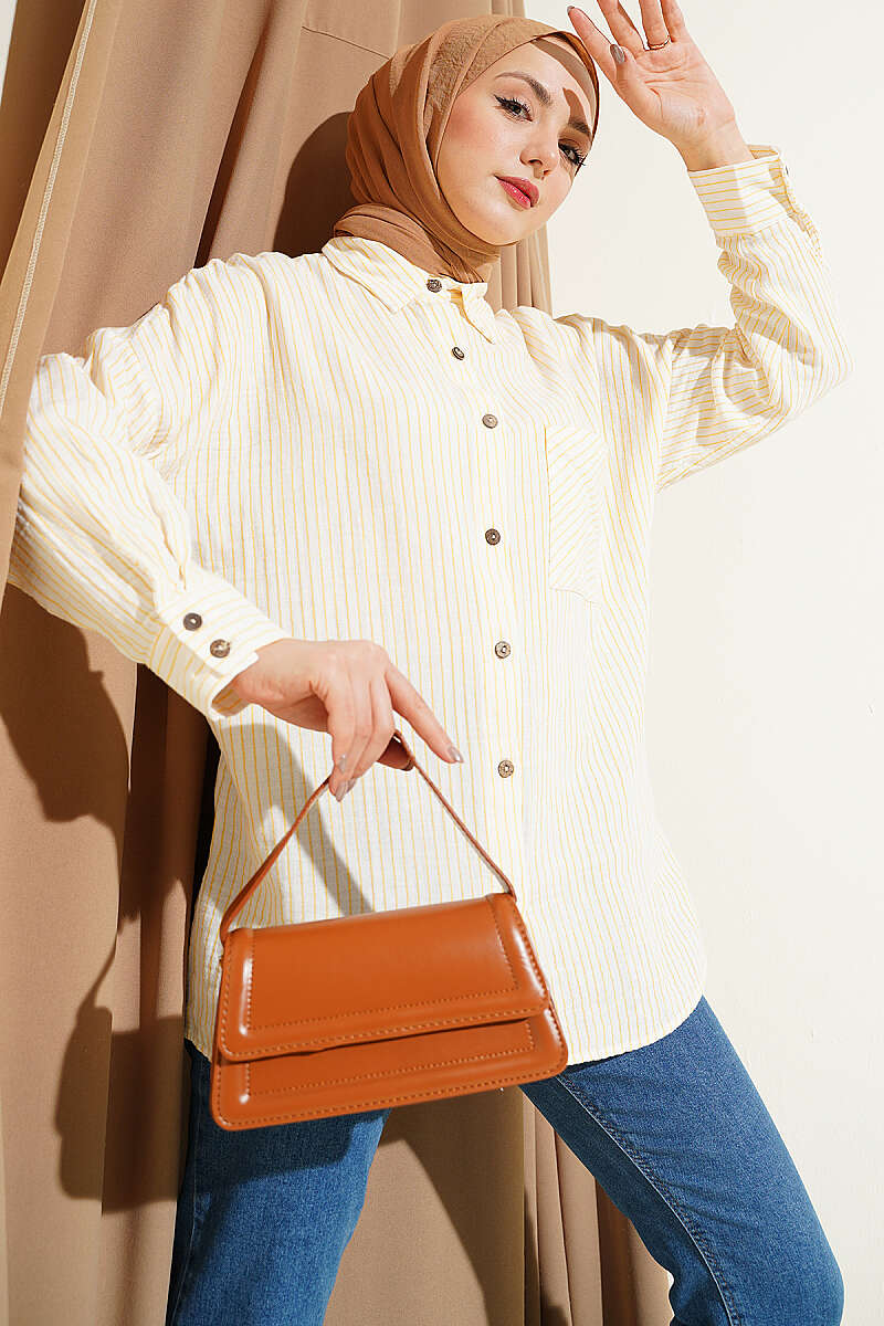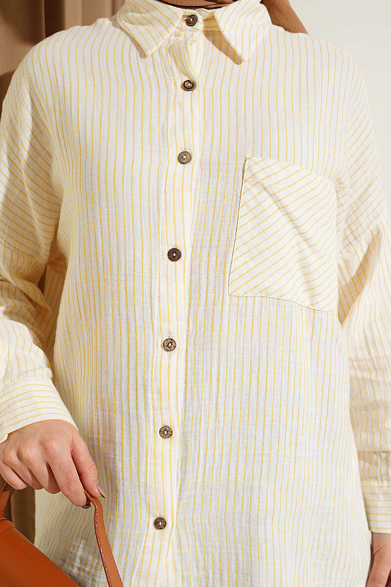 Tek Cepli Çizgili Müslin Gömlek Sarı